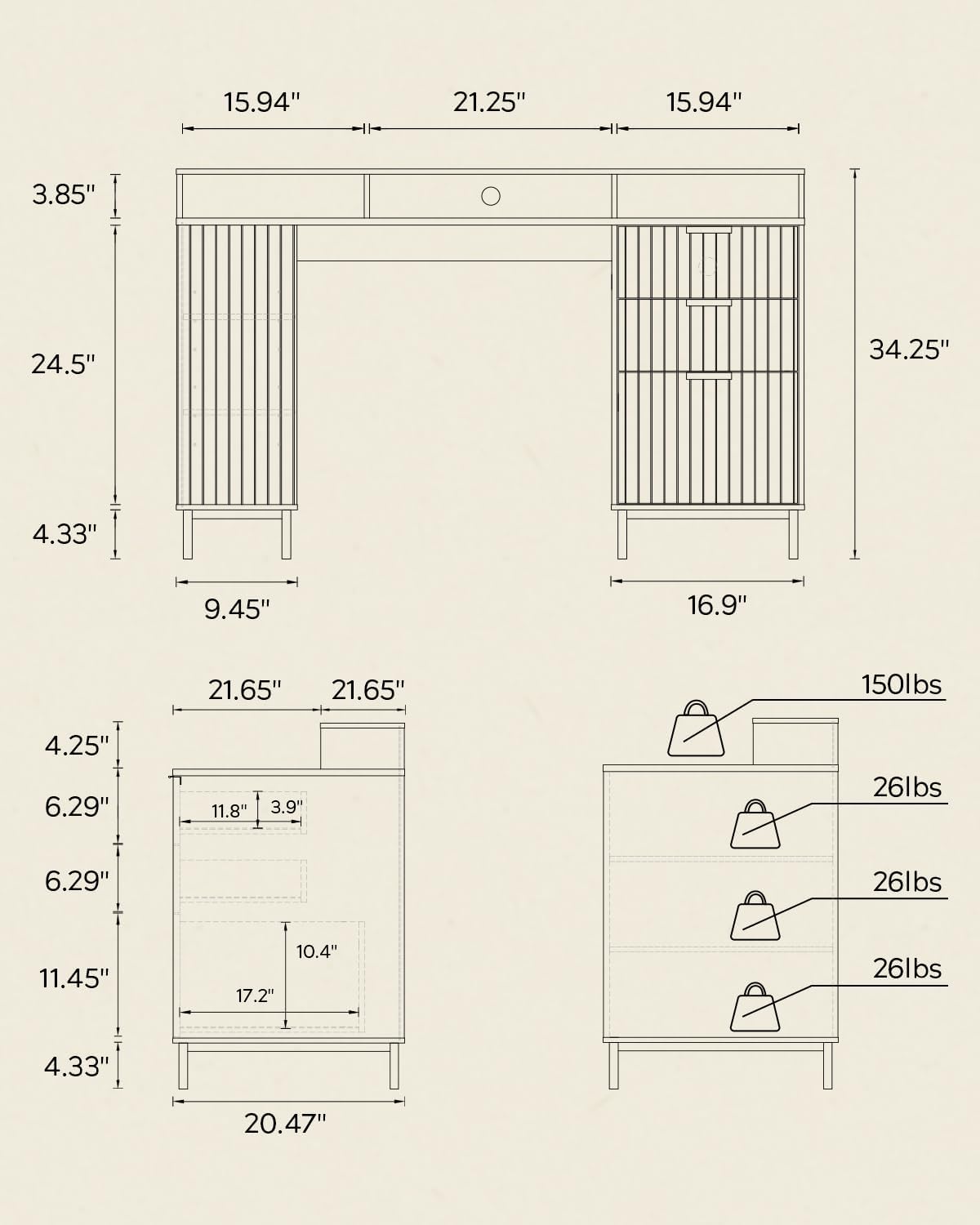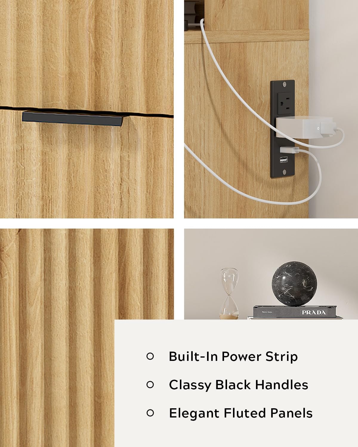55'' Fluted Executive Desk with Drawers, Modern Home Office Computer Desk with Charging Station, File Drawer, Monitor Stand, Storage Shelf for Work Writing Study, Natural Oak