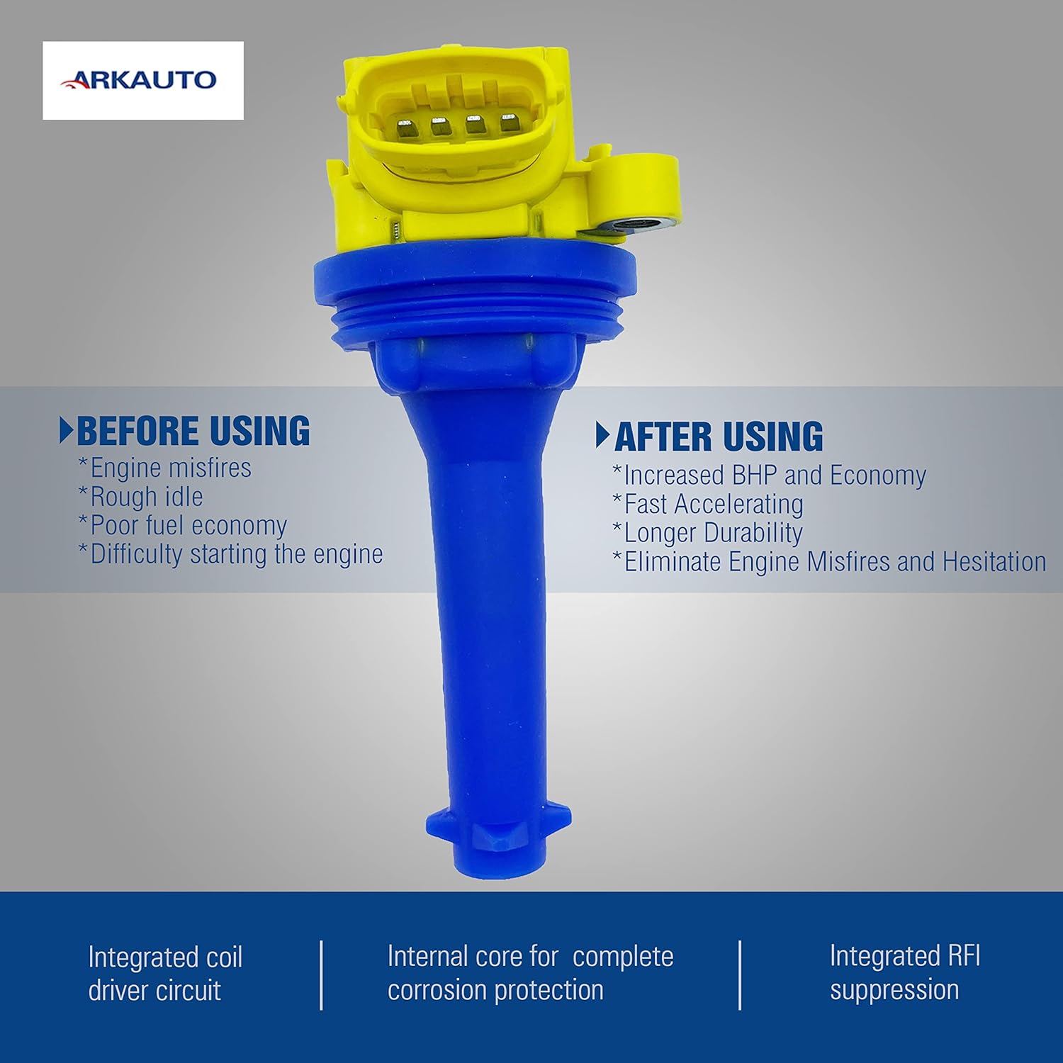 5PCS ARKAUTO HIGH PERFORMANCE IGNITION COIL ARK-IG517-Y UF517 UF-517 30713417 86778370 307134170 307134171 C1721 86778370 FOR VOLVO C30 C70 S40 S60 V50 V70 XC70 2.5T 2.4 2.4T L5