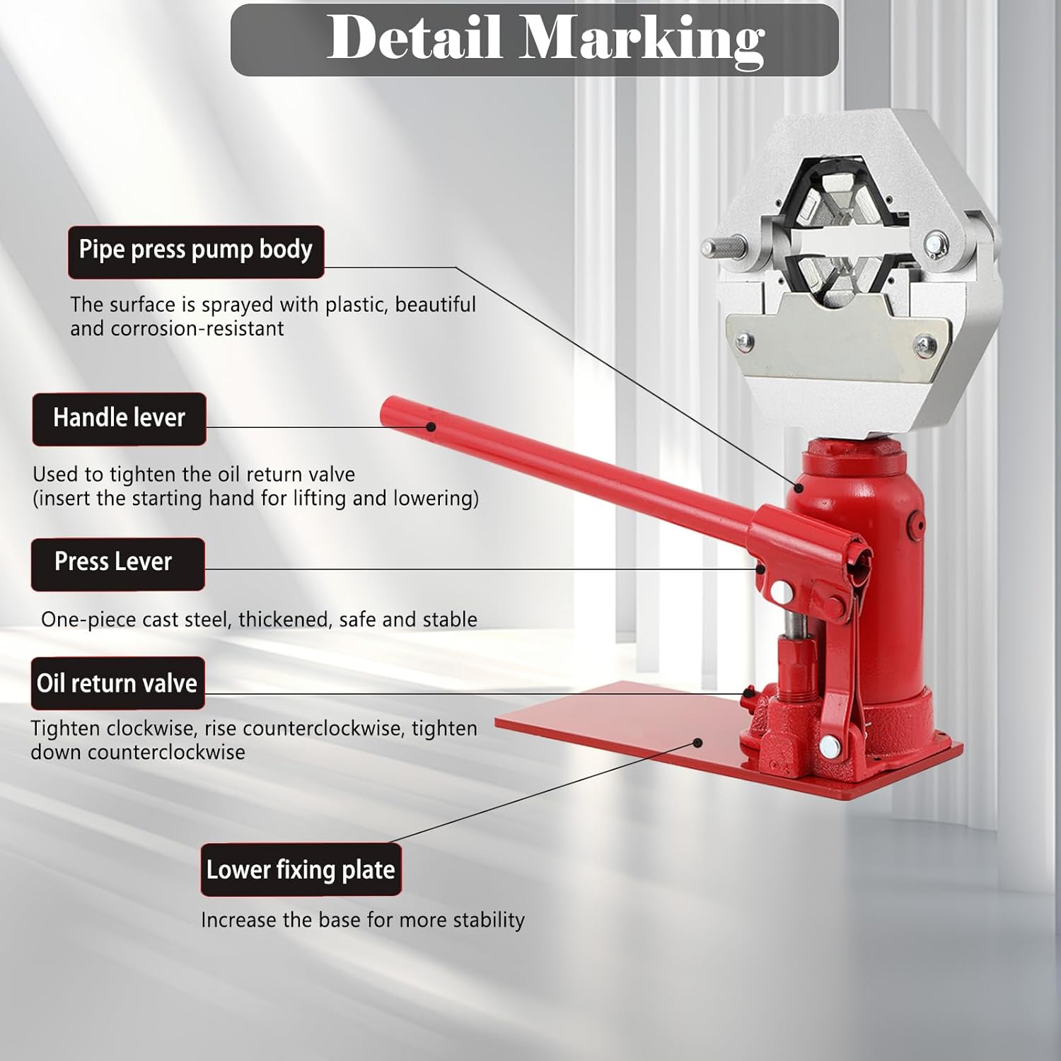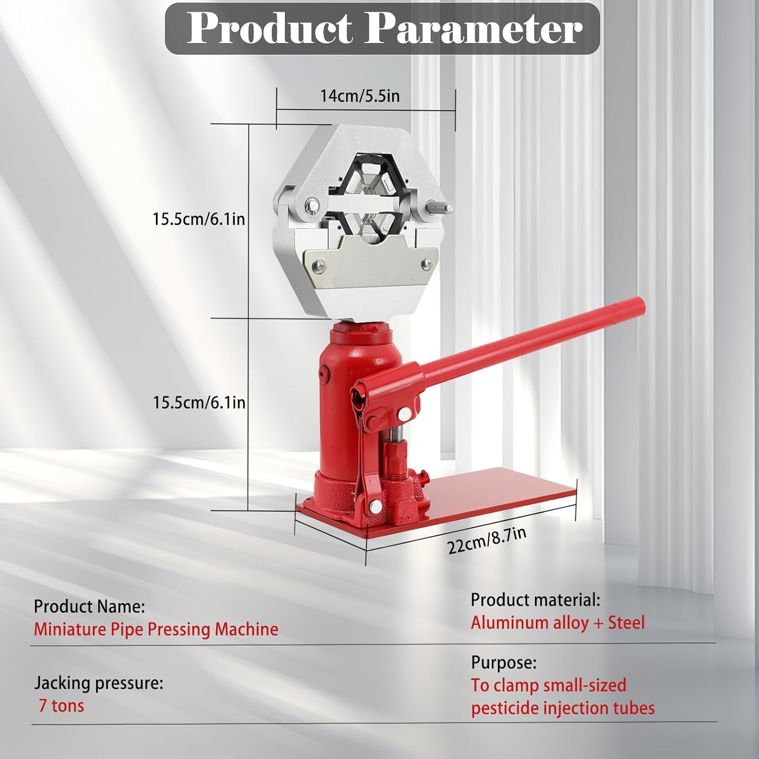 6.5-20mm Manual Hydraulic Hose Crimper Bottle Jack Hose Crimper Benchtop Agricultural 7T Hydraulic Hose Press Machine 6 Teeth High Pressure Sprayer Hose Diesel Hose Pressing Hydraulic Clamping Tools
