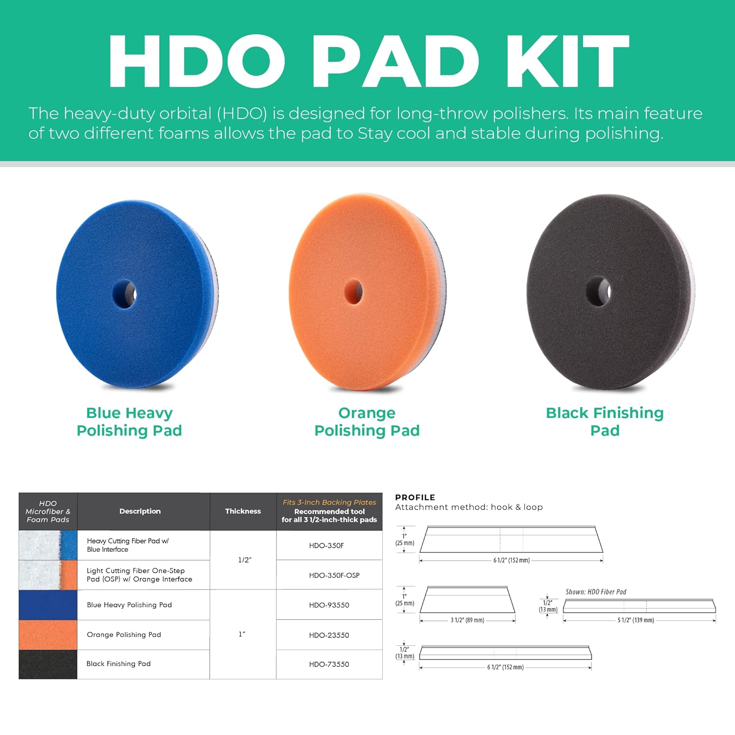 6.5" Lake Country HDO Foam Polishing Pad Kit (3-Pack) – Premium Heavy Duty Orbital Polishing Pads for Painted Surfaces – Fits 6" Backing Plate