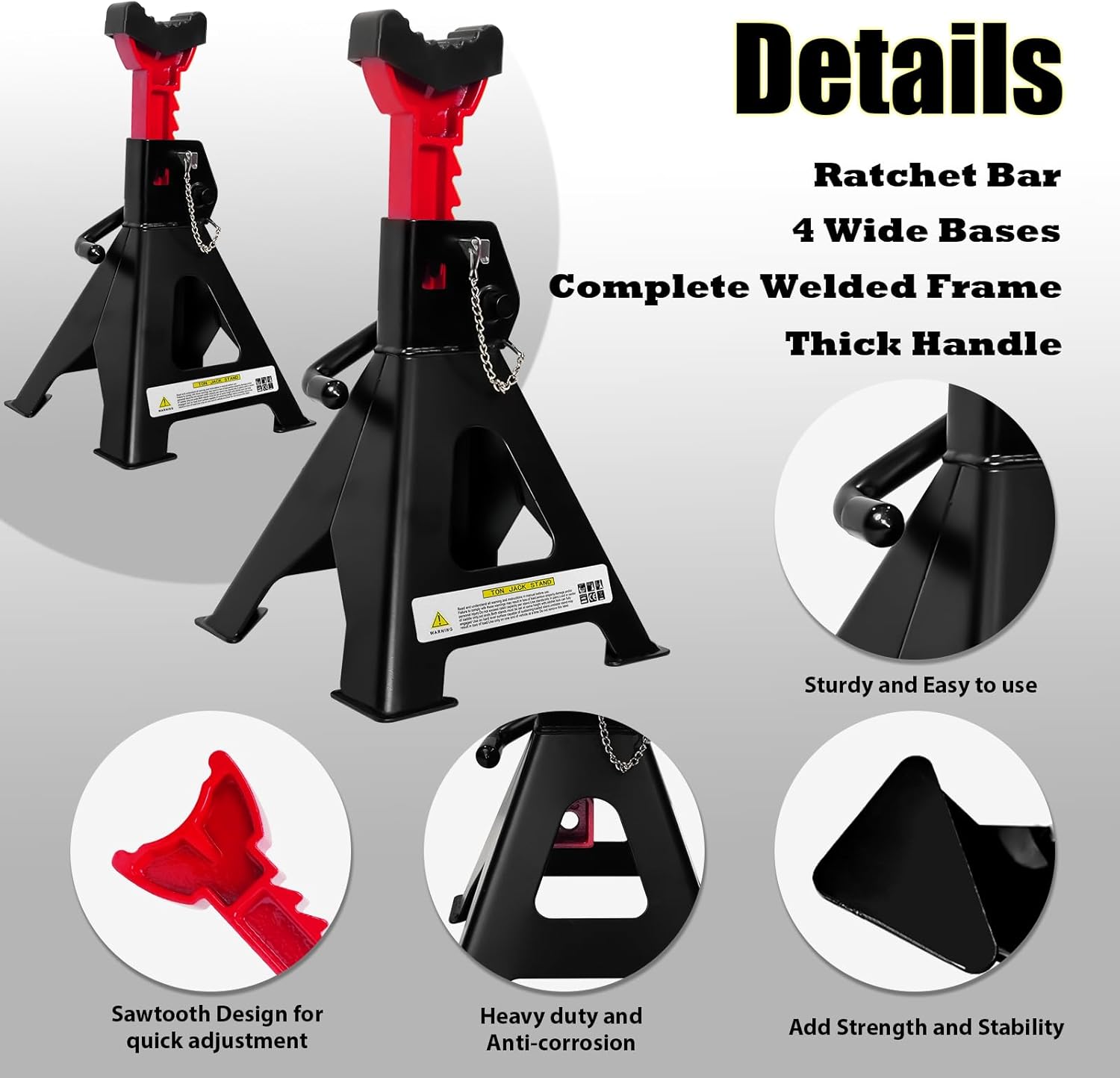 6 Ton Jack Stands, 15.6"-23.4" Adjustable with Double Pin Locking,Heavy Duty Jack Stands with Extra Rubber Pads,Car Lifts for Home Garage,Lifting Various Vehicles,1 Pair Black