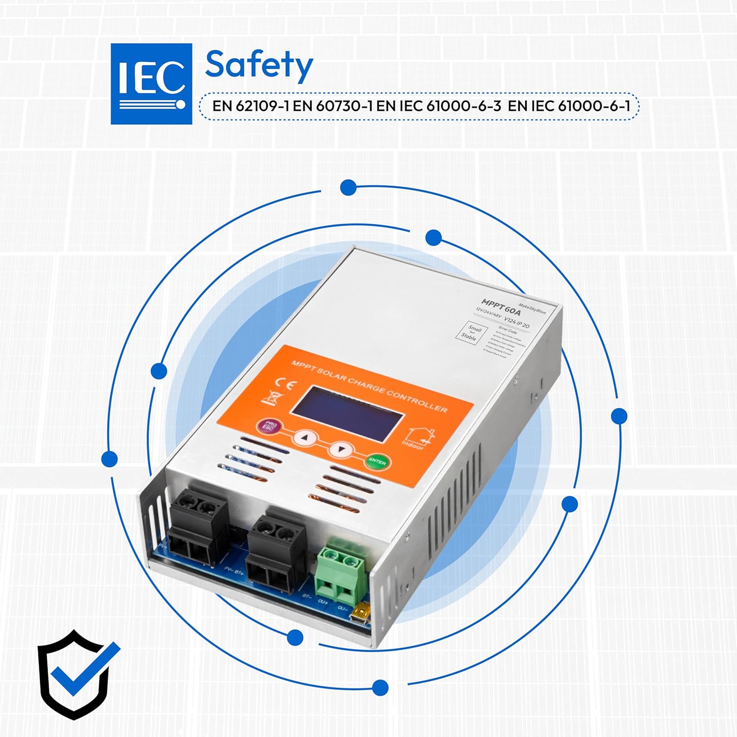 60A MPPT Solar Charge Controller, Auto 12V/24V/48V Detect, LCD Display, Max 160V PV Input, Compatible with AGM Lithium Lead-Acid Batteries