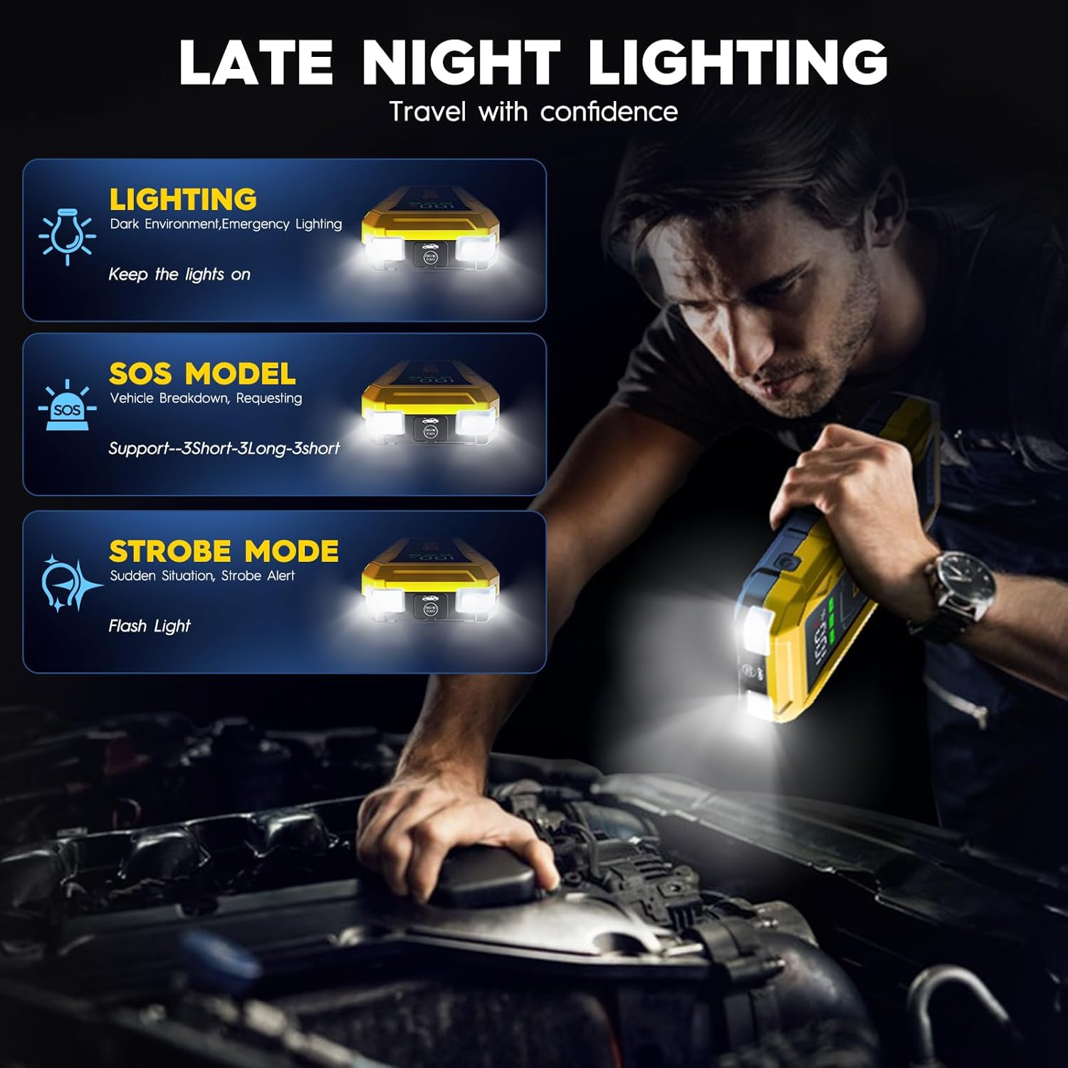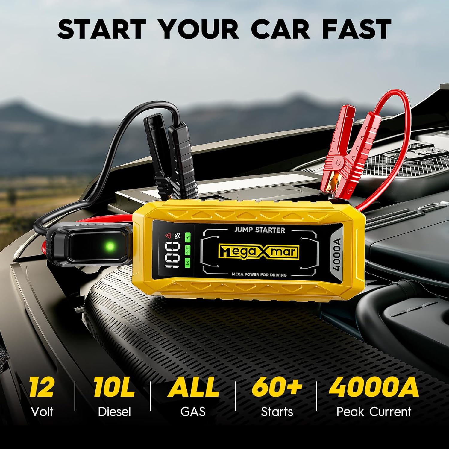 60w PD Battery Jump Starter 27000mAh 4000A, All Gas, 10L Diesel Engine, 12V car Battery Portable Jumper Box, Type C Booster Car Jumper Cable Pack