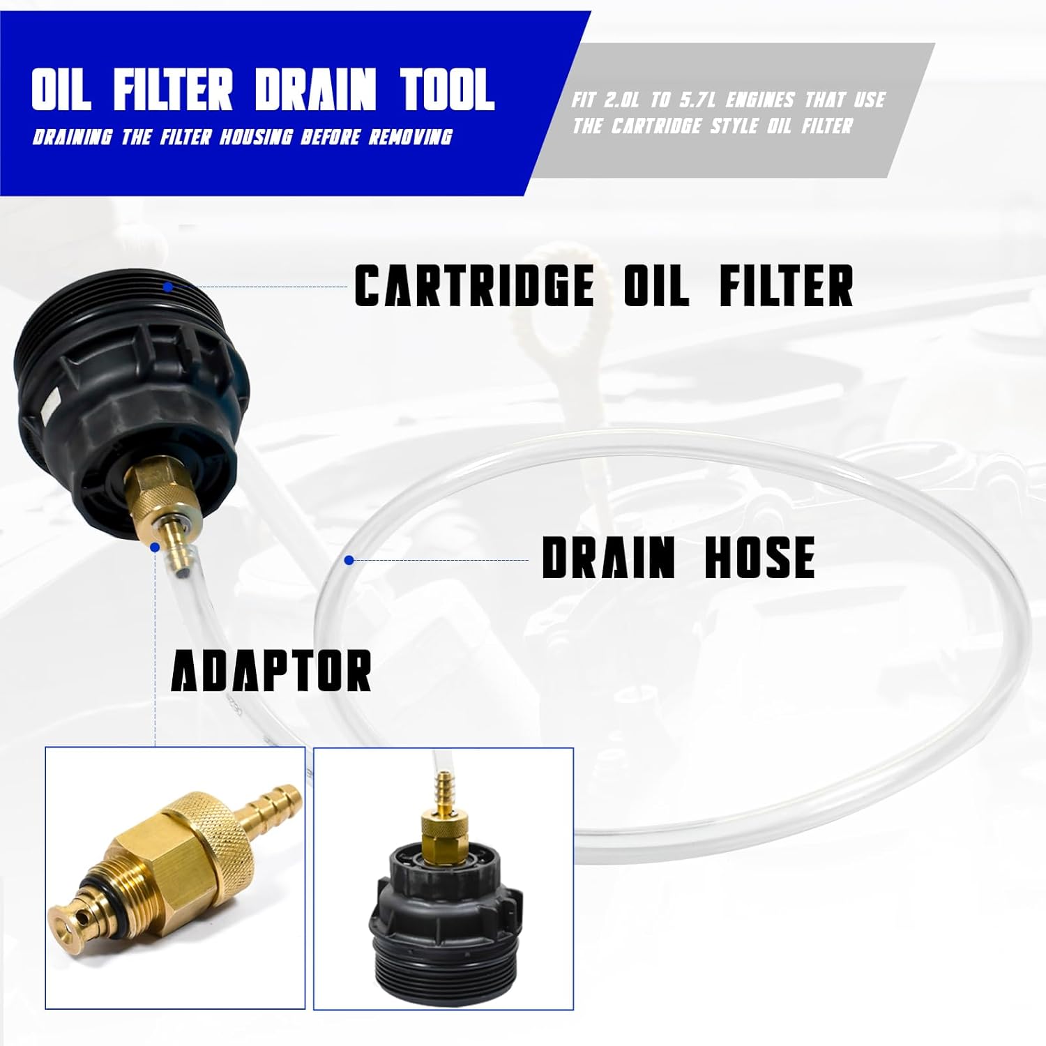 64mm Oil Filter Wrench, Drain Hose & Engine Oil Funnel for Toyota, Lexus and Scion 2.0-5.7L Engine Cartridge Style Oil Filter Remover Tool