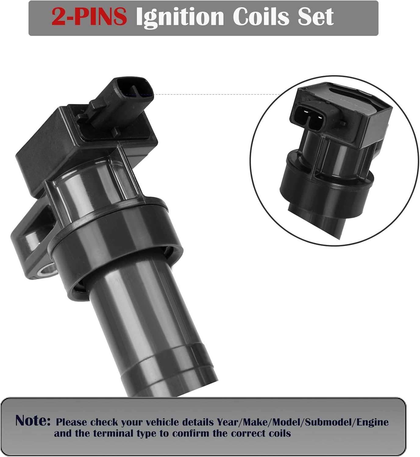 6PCS Coil Packs for Hyundai Santa Fe Genesis Coupe Sonata Veracruz Azera Kia Sedona Sorento 2007 2008 2009 2010 2011 2012 2013 2014 2015 Ignition Coils 3.8 3.5 3.3 UF546