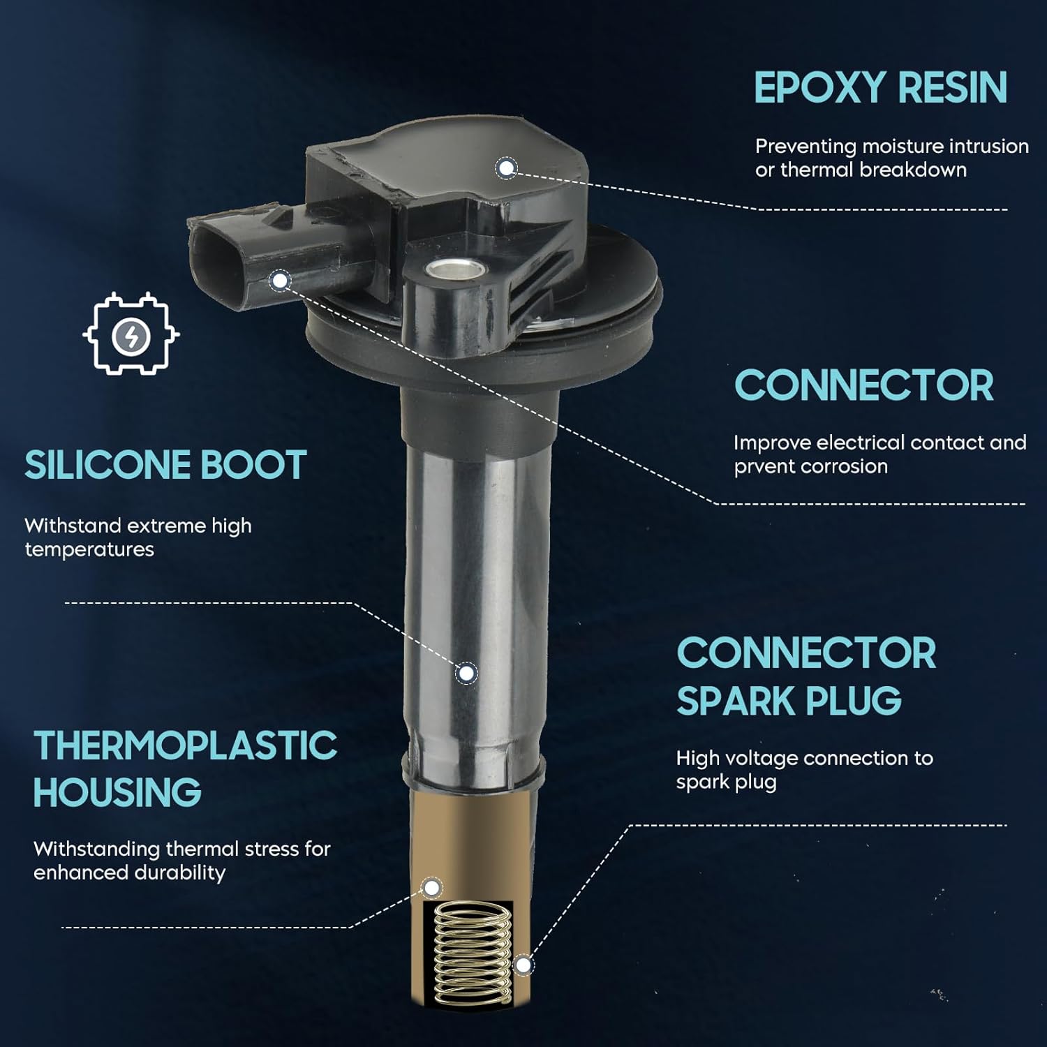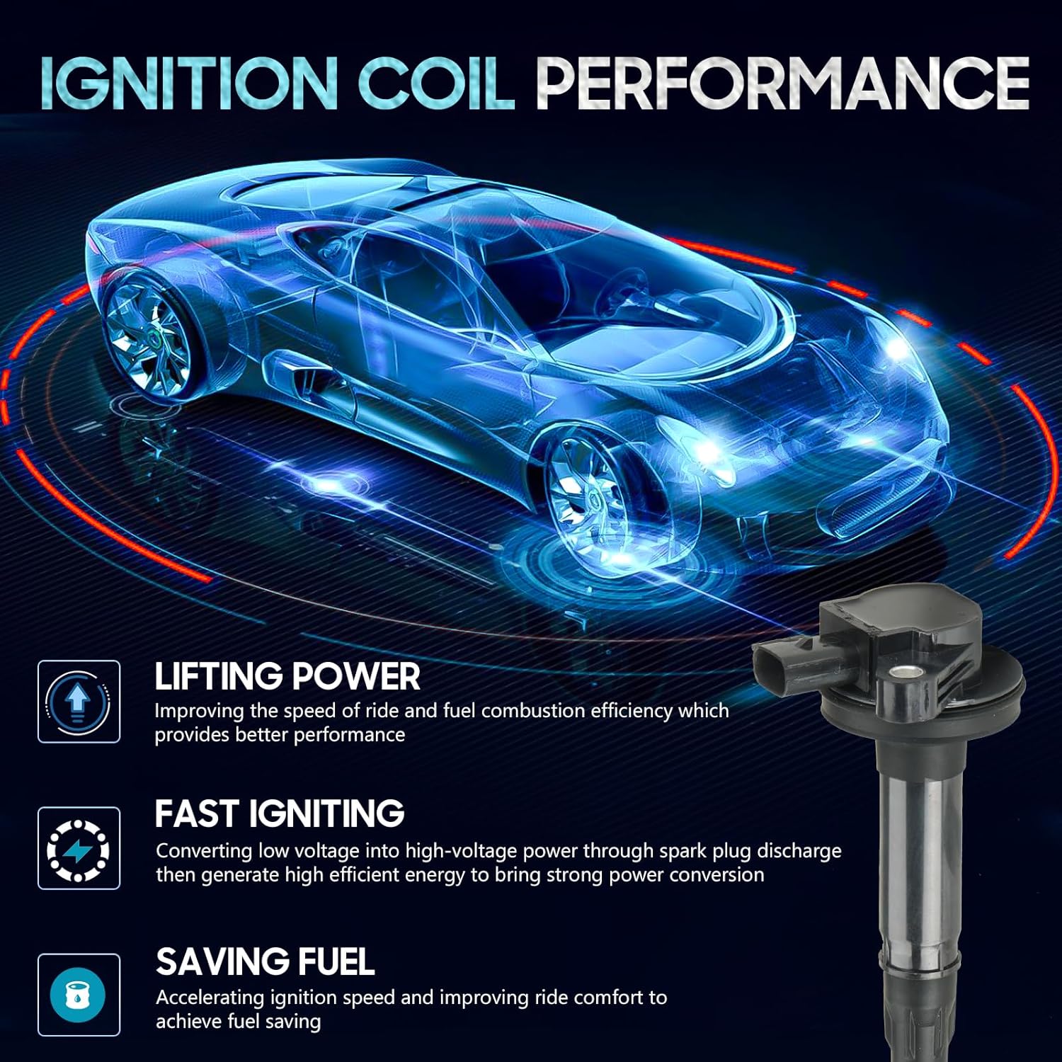 6PCS Ignition Coil Pack Compatible with Ford Mercury Mazda Lincoln 3.5L, 3.7L V6 Edge, F150, Explorer, Mustang, Taurus X, MKZ, Transit T150 T250 T350, Replace for DG520 UF553 C1595, Black