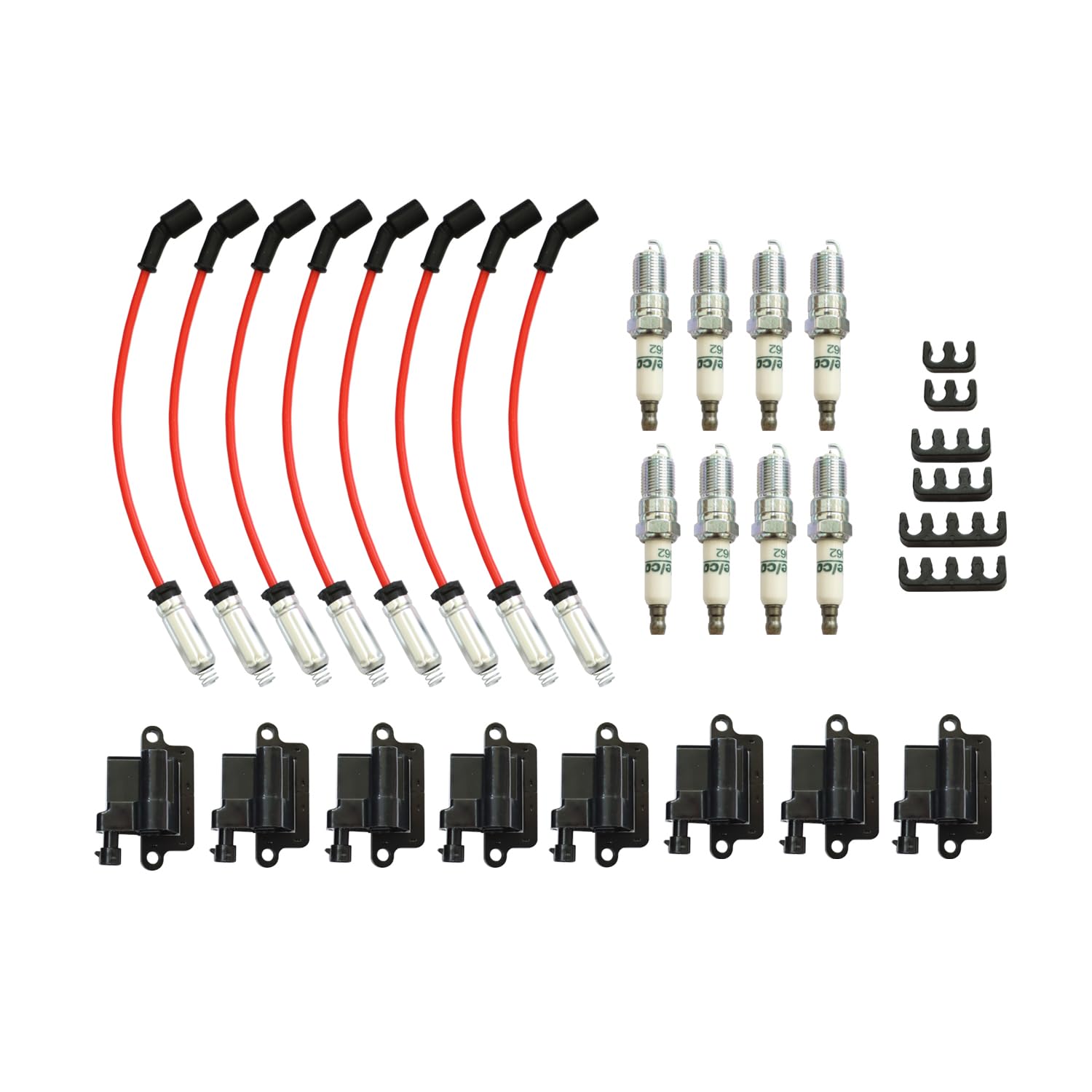 8 Pack UF271 Ignition Coils Double Iridium Spark Plugs & Wires Compatible with Silverado/Sierra 1500 2500 3500 Compatible with Yukon XL 1500 2500 1999-2007 4.8L 5.3L 6.0L 19299585 19299585