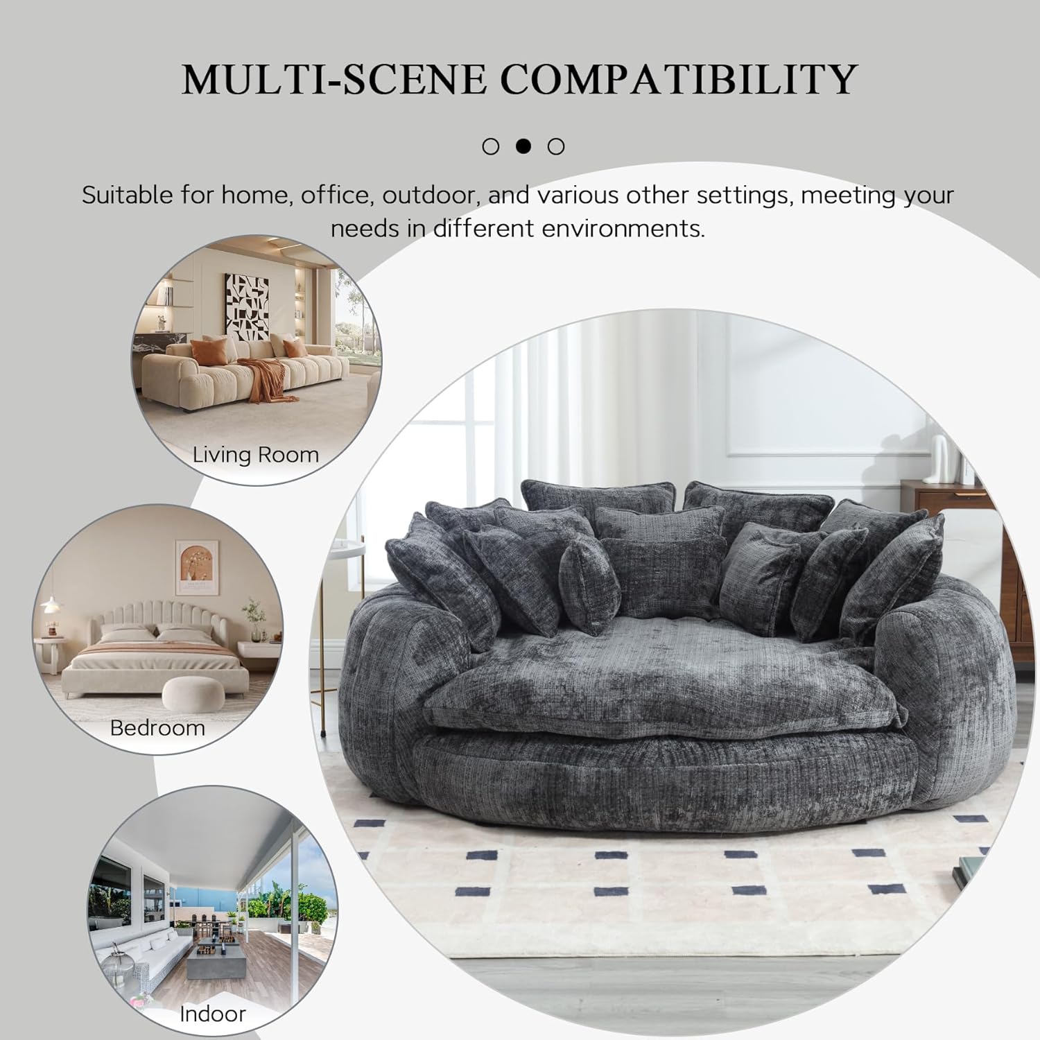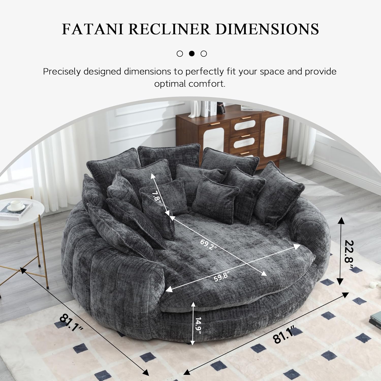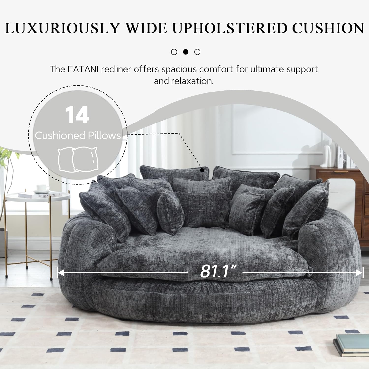 81.1" Oversized Round Chaise Lounge Chair, Extra-Wide 2-Person Accent Chair with 14 Pillows, Comfy Cloud Sleeper Sofa for Living Room (Dark Grey)