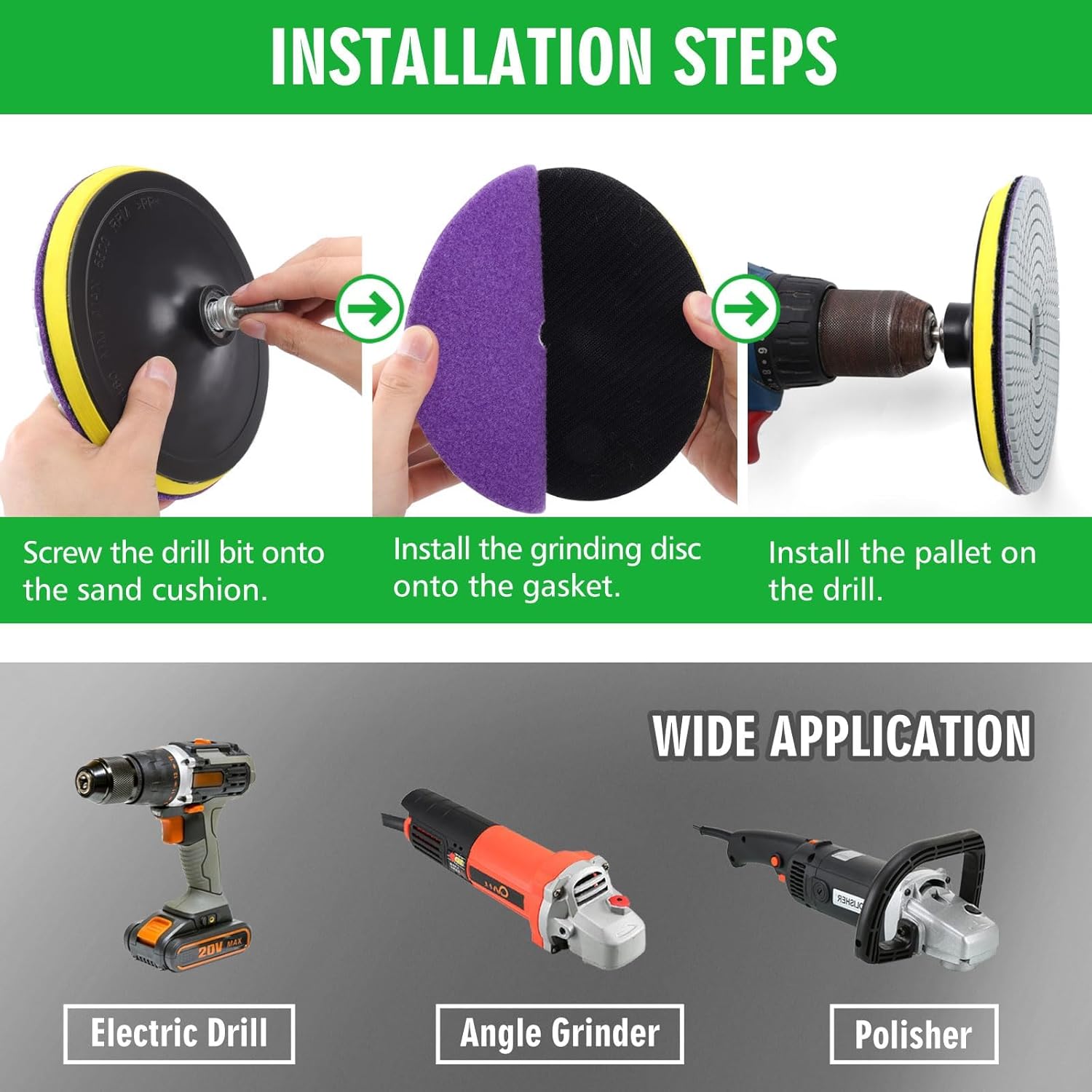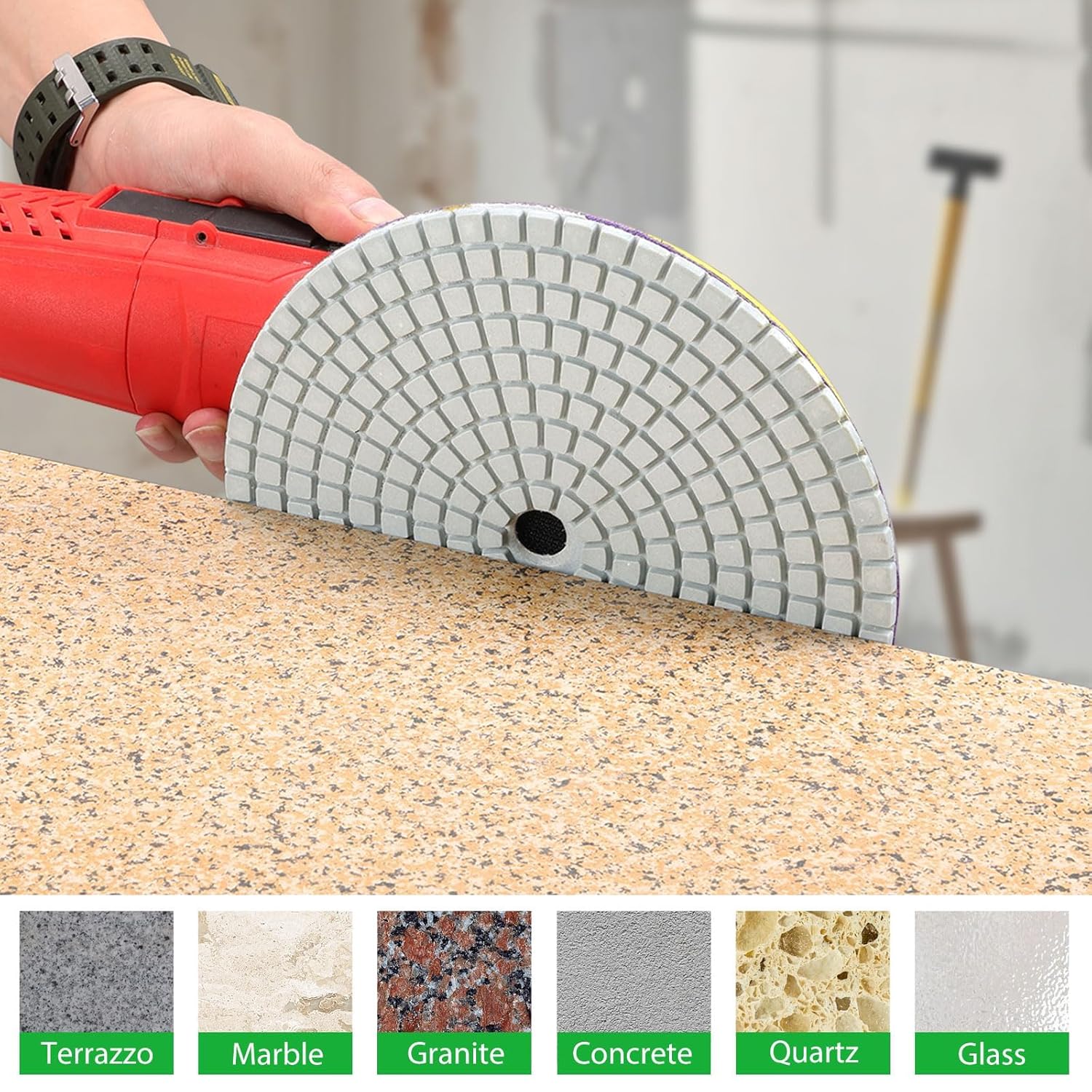 8PCS Diamond Polishing Pads 7 Inch, Wet/Dry Concrete Polish Tools Kit for Drill, Grinder, Polisher, 50-3000 Grit Polishing Set for Marble Granite Quartz Stone