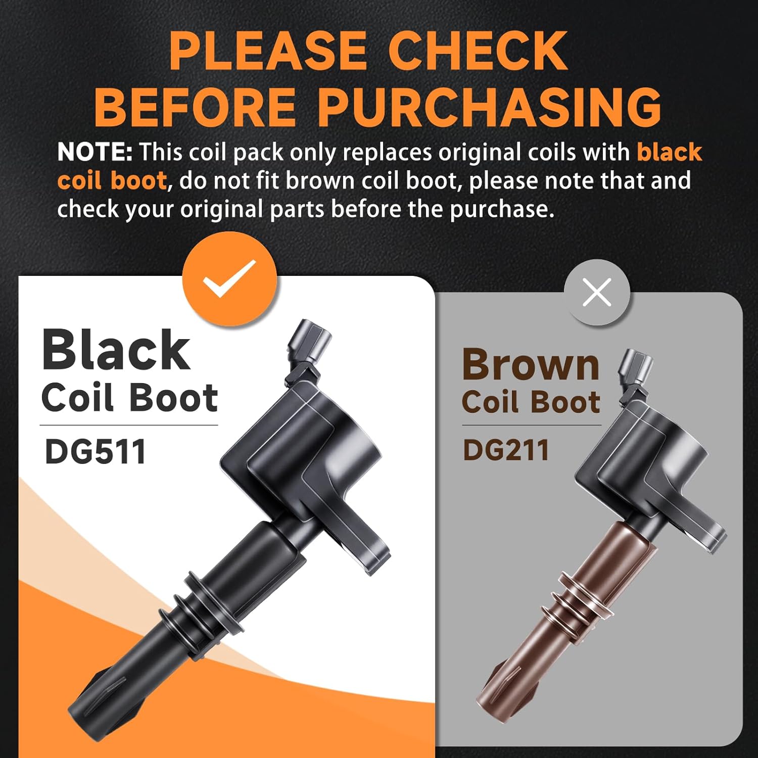 8PCS Ignition Coil Pack Compatible with Ford Lincoln 4.6L 5.4L 5.8L 6.8L Expedition Explorer F-150 F-250 F-350 Super Duty Mustang Explorer Navigator 2004 2005 2006 2007 2008 2009, DG511 C1541 FD508