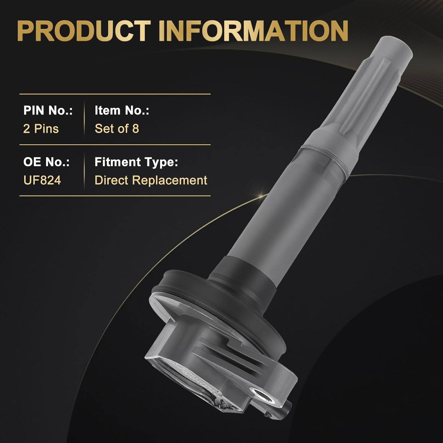8PCS Ignition Coil Pack UF824 Replacement for Ford for F150 V8 5.0L 2016 2017, for Mustang V8 5.0L 2016 2017 FR3Z12029A DG561