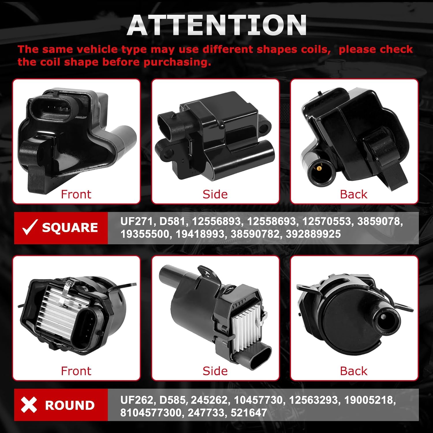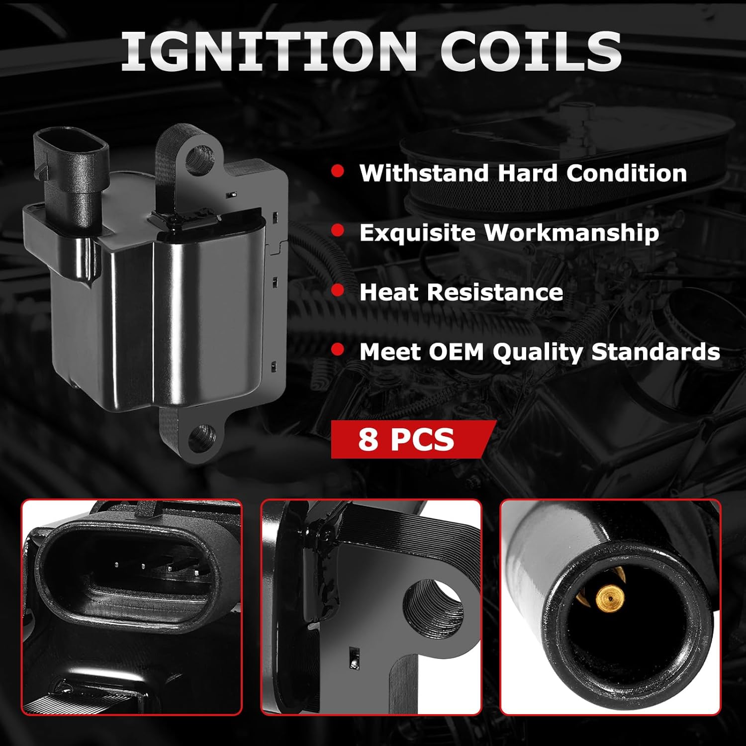 8Pcs UF271 Square Ignition Coils with 41-962 Platinum Spark Plugs & 748UU 8mm Spark Plug Wires Set Compatible with Chevy Silverado Suburba Tahoe, Cadillac, GMC Sierra Yukon 4.8L 5.3L 6.0L