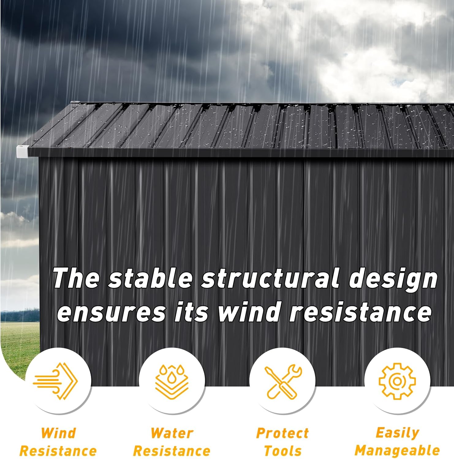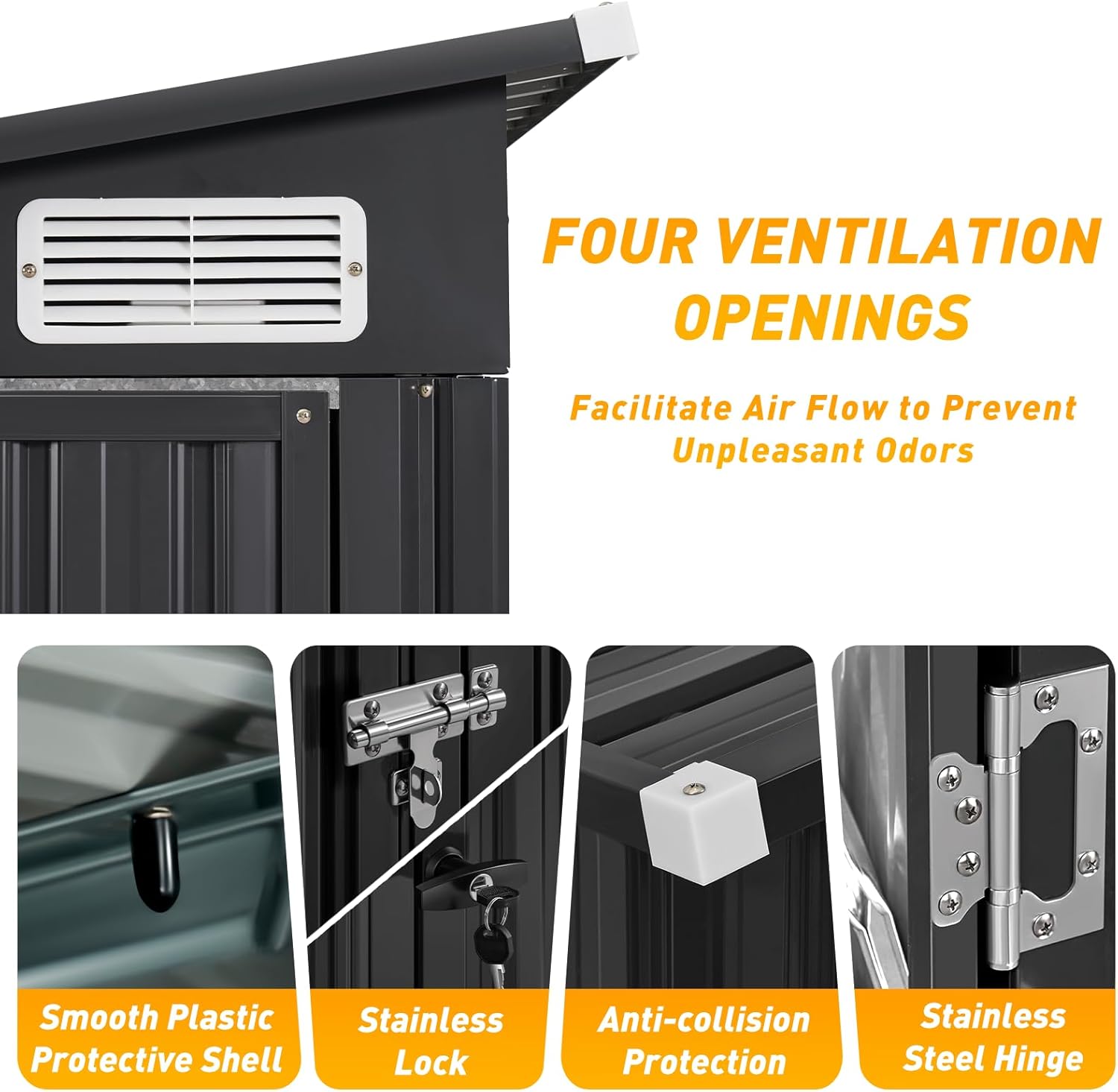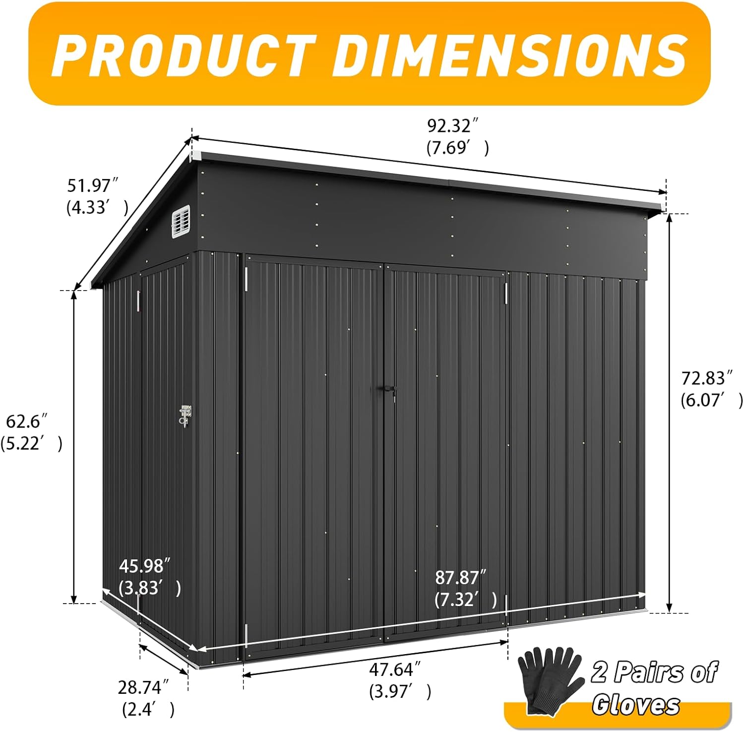 8'x4' Shed Galvanized Steel Storage Sheds with Triple Doors Utility Sheds for Vertical Storage, Dual Lock Lean to Shed with Sloped Roof for Mower, Bike, Garden Tools (Black)
