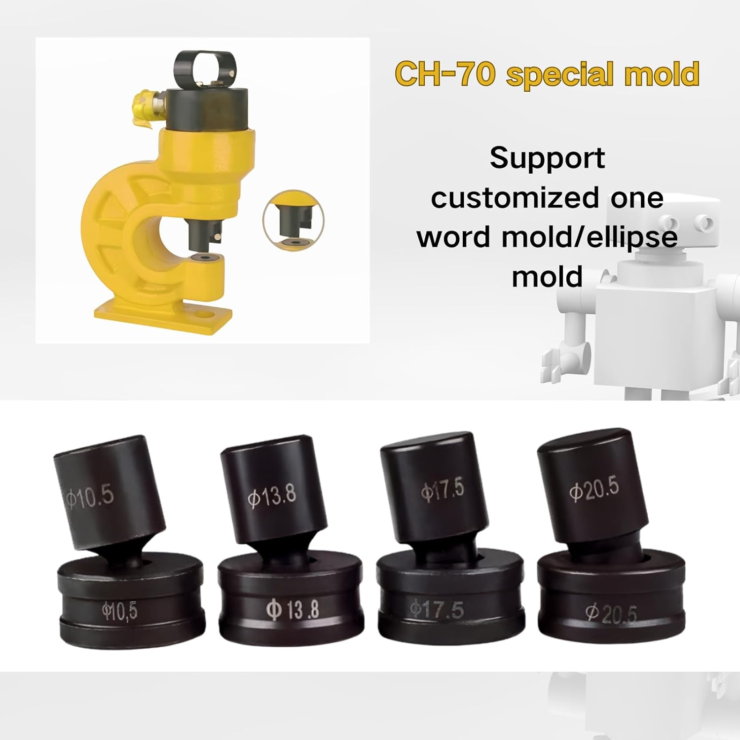 9-Piece Square Hole Punch Die Set for Hydraulic Punch Tool - Compatible with CH-70 Machine, Metal Punching Dies for Steel Sheet, Copper Plate, Aluminum Plate (9-Piece Square Hole Punch Die Set)
