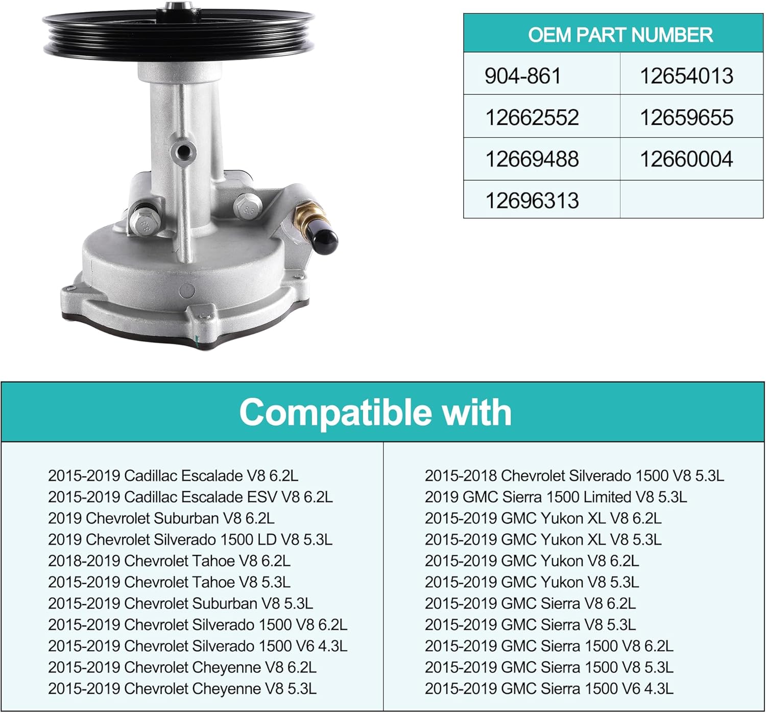 904-861 Vacuum Pump For 2014-2020 Chevy Tahoe Silverado Suburban 1500,Cadillac Escalade,GMC YUKON Sierra Denali 1500,4.3L 5.3L 6.2L-12662552 12669488 12696313 12654013 12659655 12660004