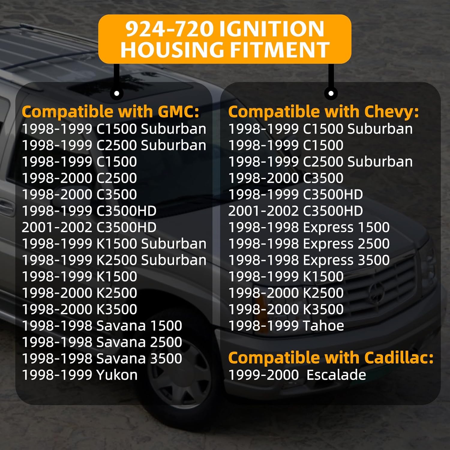 924-720 Ignition Assembly Ignition Lock Cylinder Housing Compatible with Chevy Surburban Tahoe Express GMC Savana Yukon Cadillac Escalade 1998 1999 2000 Replaces # 26049449