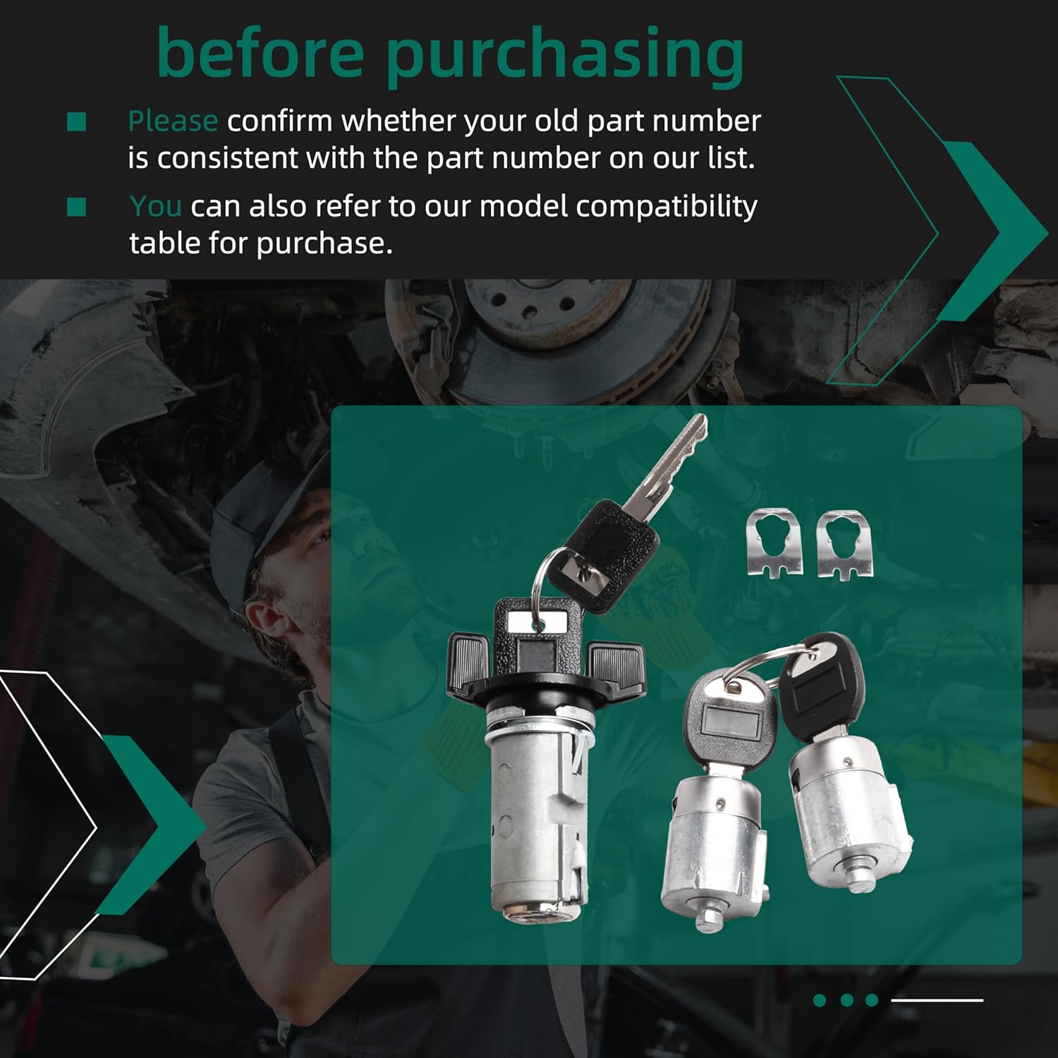 924-791 Ignition Switch Door Lock Cylinder Set with Keys Fit for Chevy GMC C1500/C2500/C3500 K1500/K2500/K3500 Pickup 1988-1994 Replace 12300443, D1414B, 701400, LC1430, LC1428