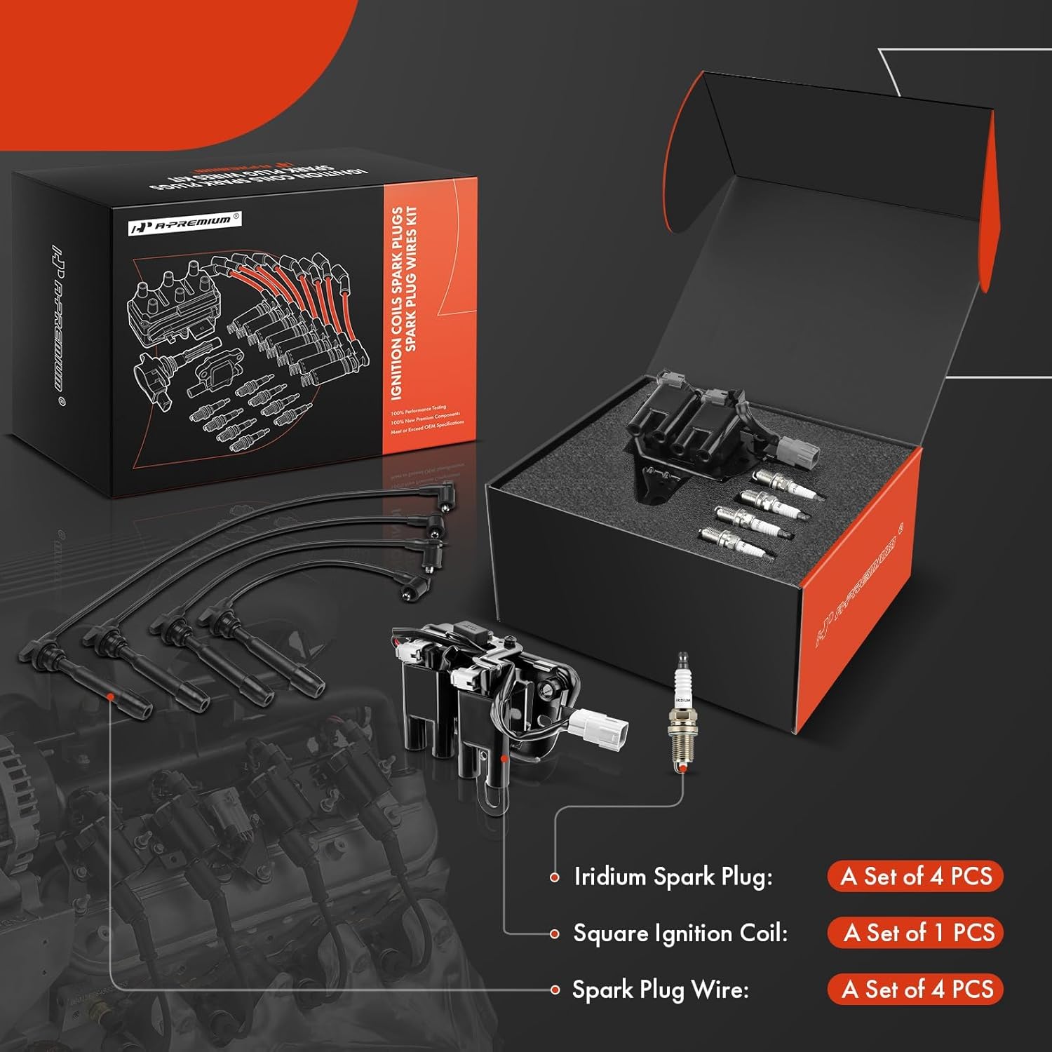 A-Premium 1 Ignition Coils with 4 Wire and 4 Iridium Spark Plugs Compatible with Hyundai Elantra 2007-2012 & Kia Soul 2010-2011, 2.0L