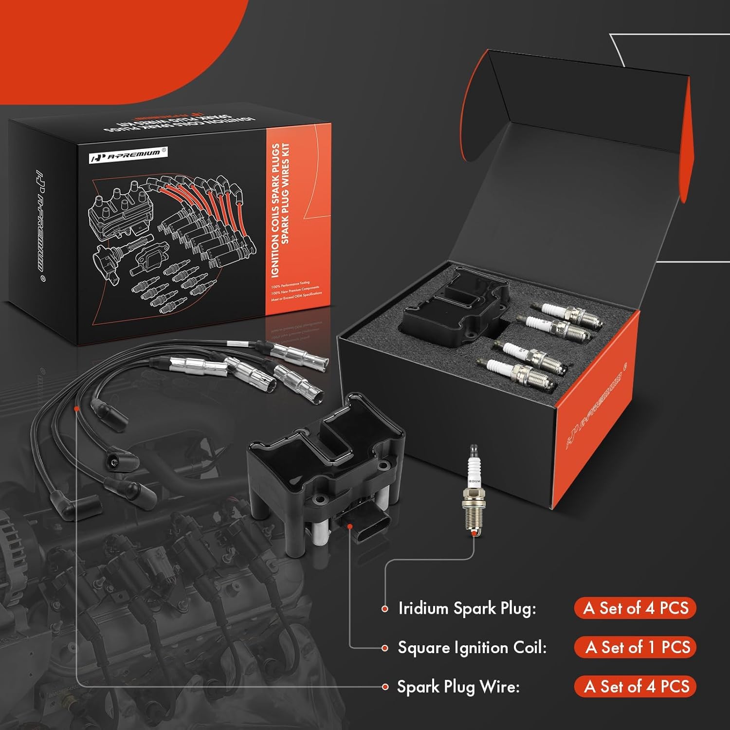 A-Premium 1 Ignition Coils with 4 Wire and 4 Iridium Spark Plugs Compatible with Volkswagen Jetta 1999-2001, Golf 1999-2001, Beetle 1998-2001, 2.0L