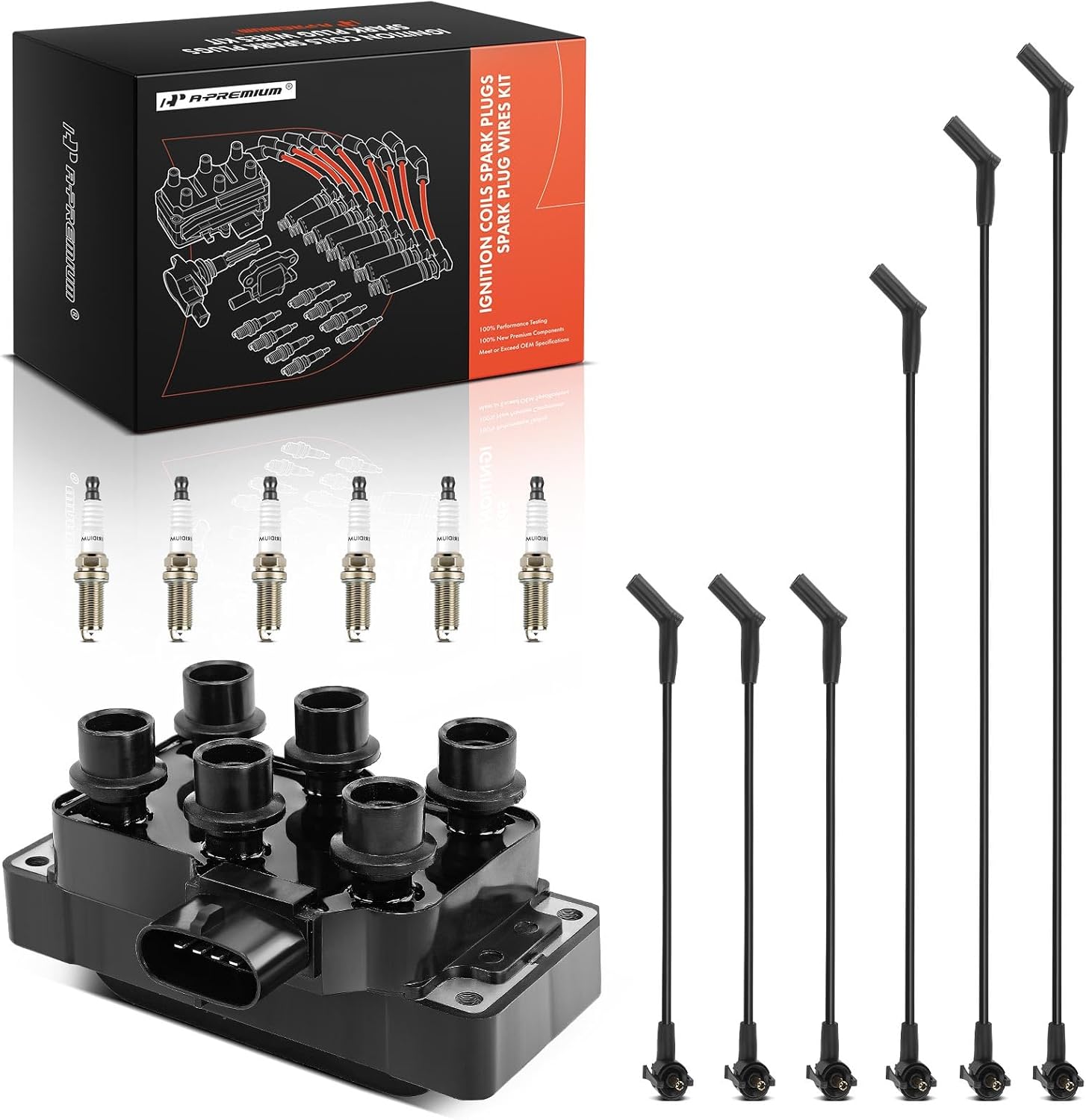 A-Premium 1 Ignition Coils with 6 Spark plug Wires and 6 Iridium Spark Plugs Compatible with Ford Explorer 2006-2010, Explorer Sport Trac, Mustang, Ranger & Mazda B4000 & Mercury Mountaineer, V6 4.0L