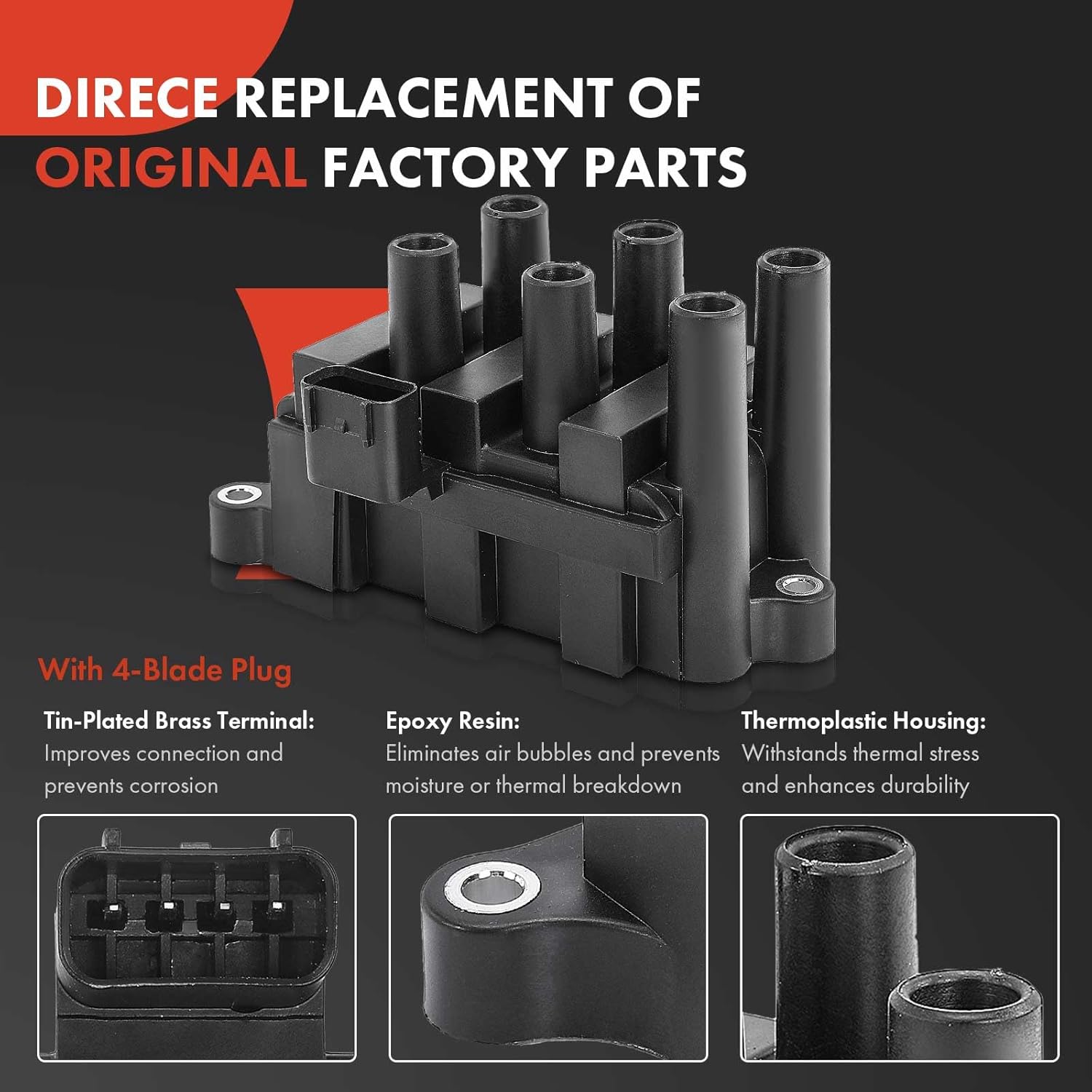 A-Premium 1 Ignition Coils with 6 Spark plug Wires and 6 Iridium Spark Plugs Compatible with Ford Ranger 2001-2003 V6 3.0L & Mazda B3000 2001 V6 3.0L, FLEX