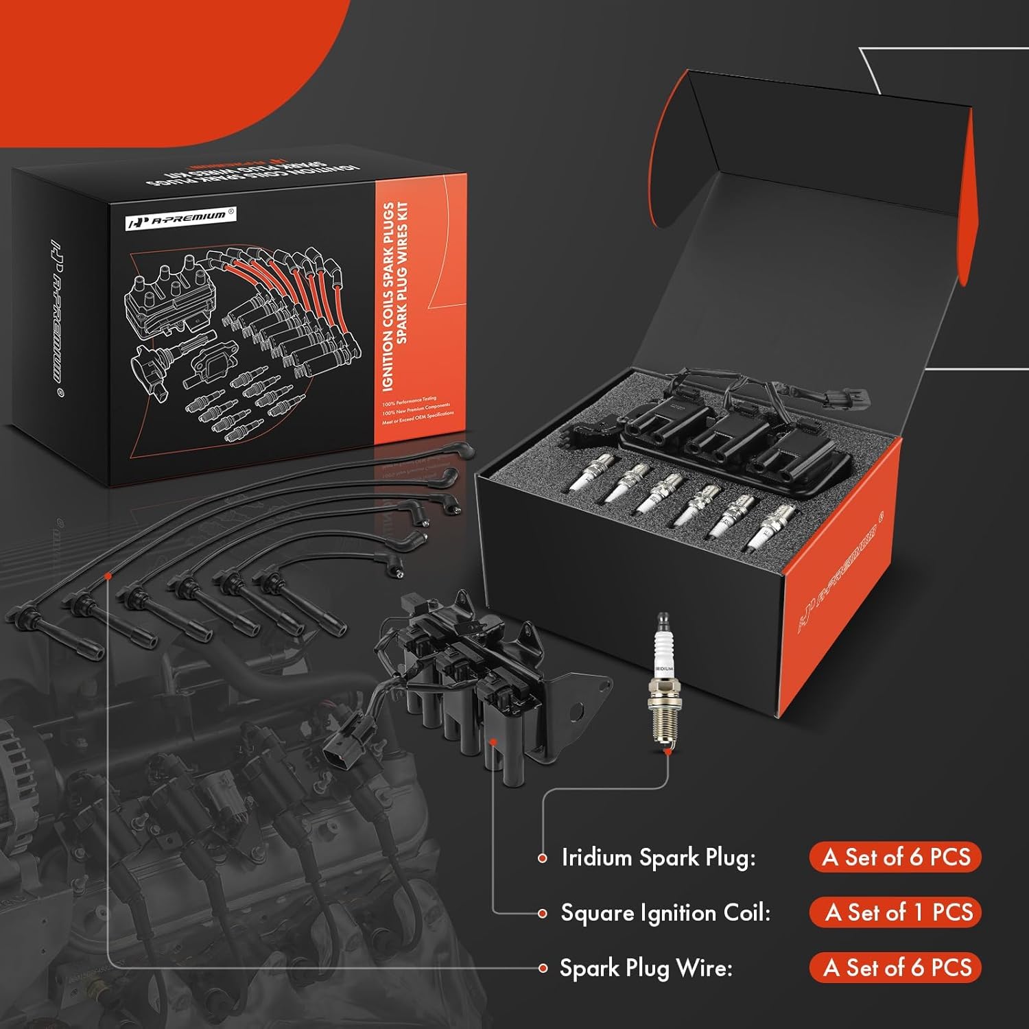 A-Premium 1 Ignition Coils with 6 Wire and 6 Iridium Spark Plugs Compatible with Kia Sportage 2005-2010 & Hyundai Tucson 2005-2009, 2.7L