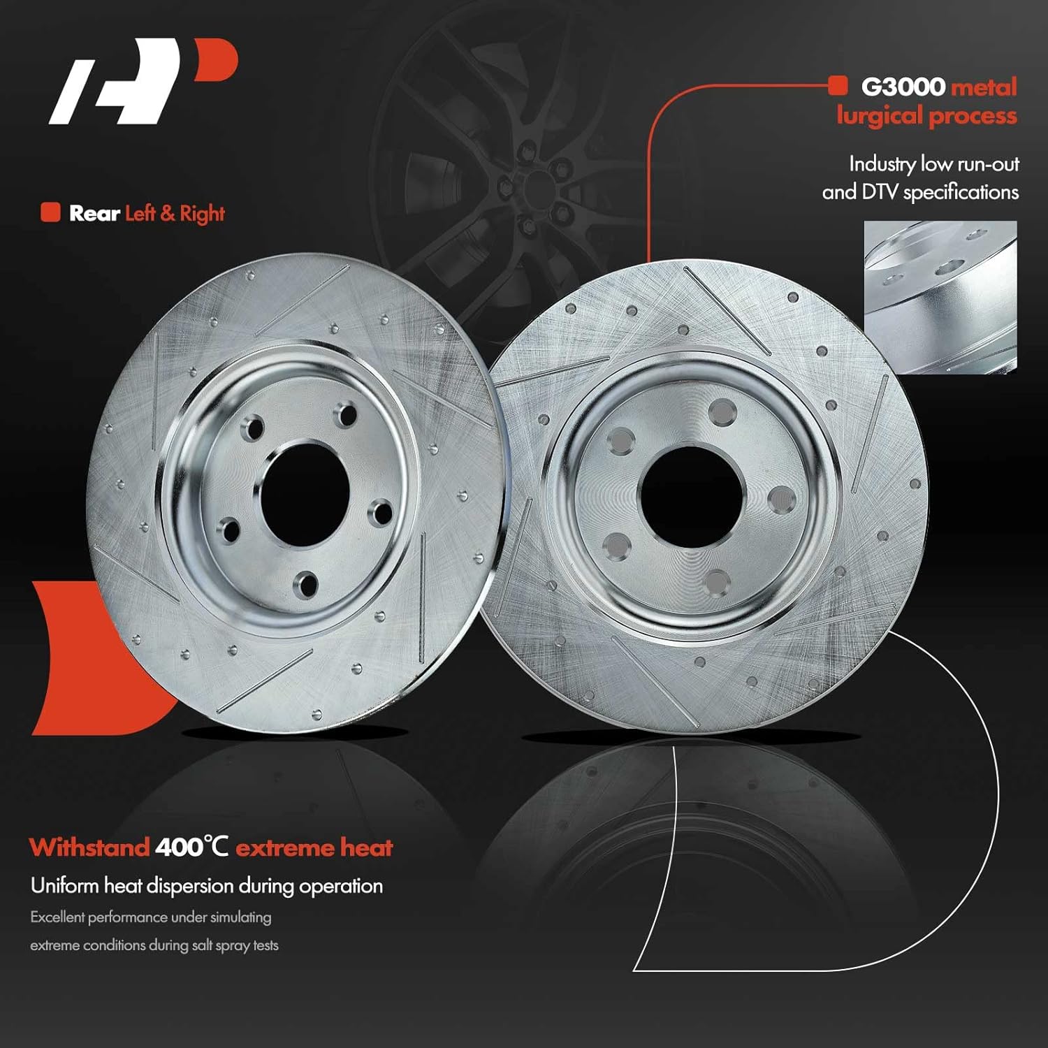 A-Premium 12.91 inch(328 mm) Rear Drilled and Slotted Disc Brake Rotors + Ceramic Pads Kit Compatible with Select Dodge, Chrysler, Volkswagen and Ram Models - Grand Caravan, Town & Country, Journey