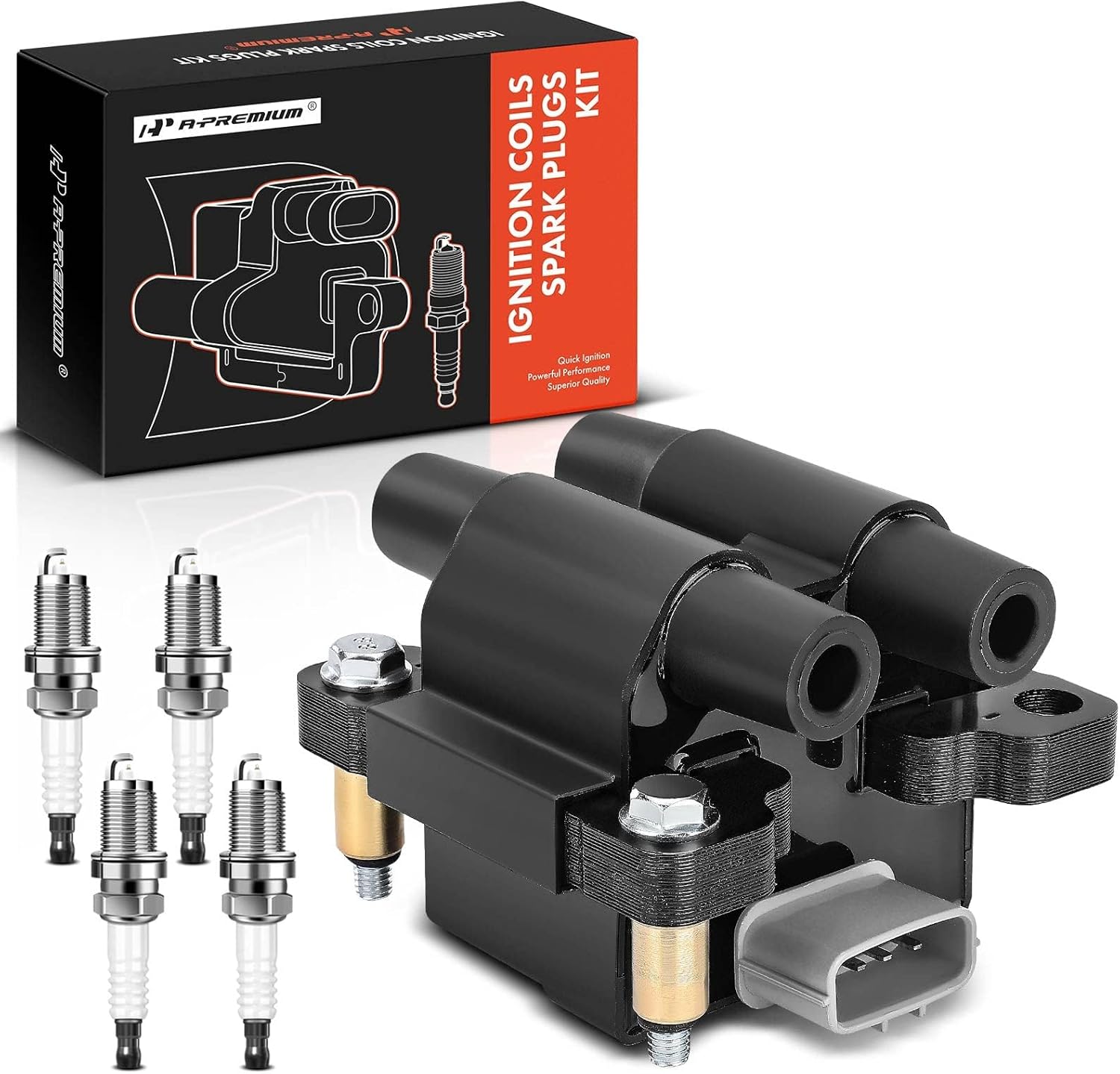 A-Premium 1x Ignition Coil Pack and 4x Iridium Spark Plugs Compatible with Subaru Forester 2009-2010, Impreza 2011, 2.5L