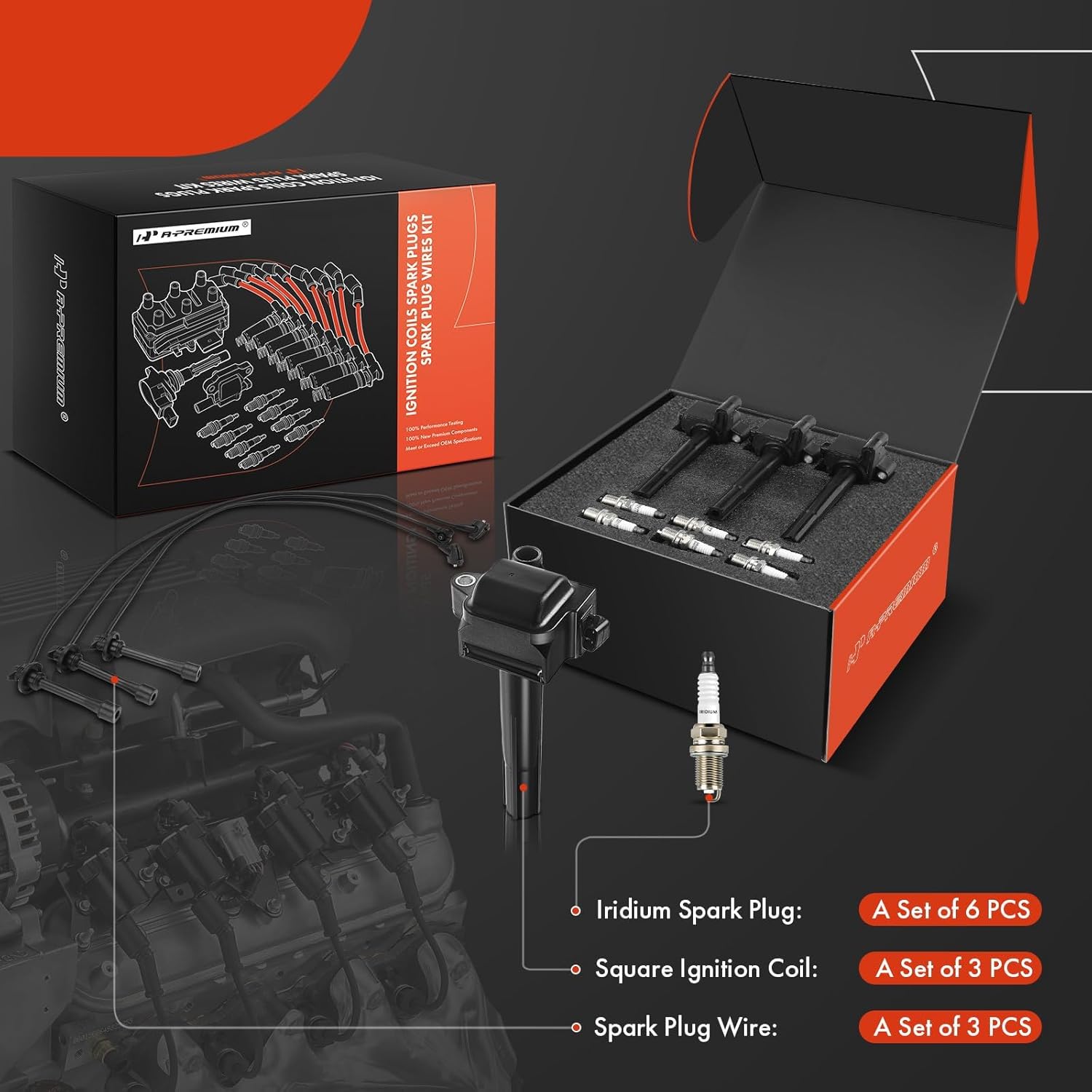 A-Premium 3 Ignition Coils with 3 Wire and 6 Iridium Spark Plugs Compatible with Toyota Camry 1996-2001, Sienna 1998-2000, Avalon 1996-1999, Solara 1999-2003 & Lexus ES300 1996-2001, 3.0L