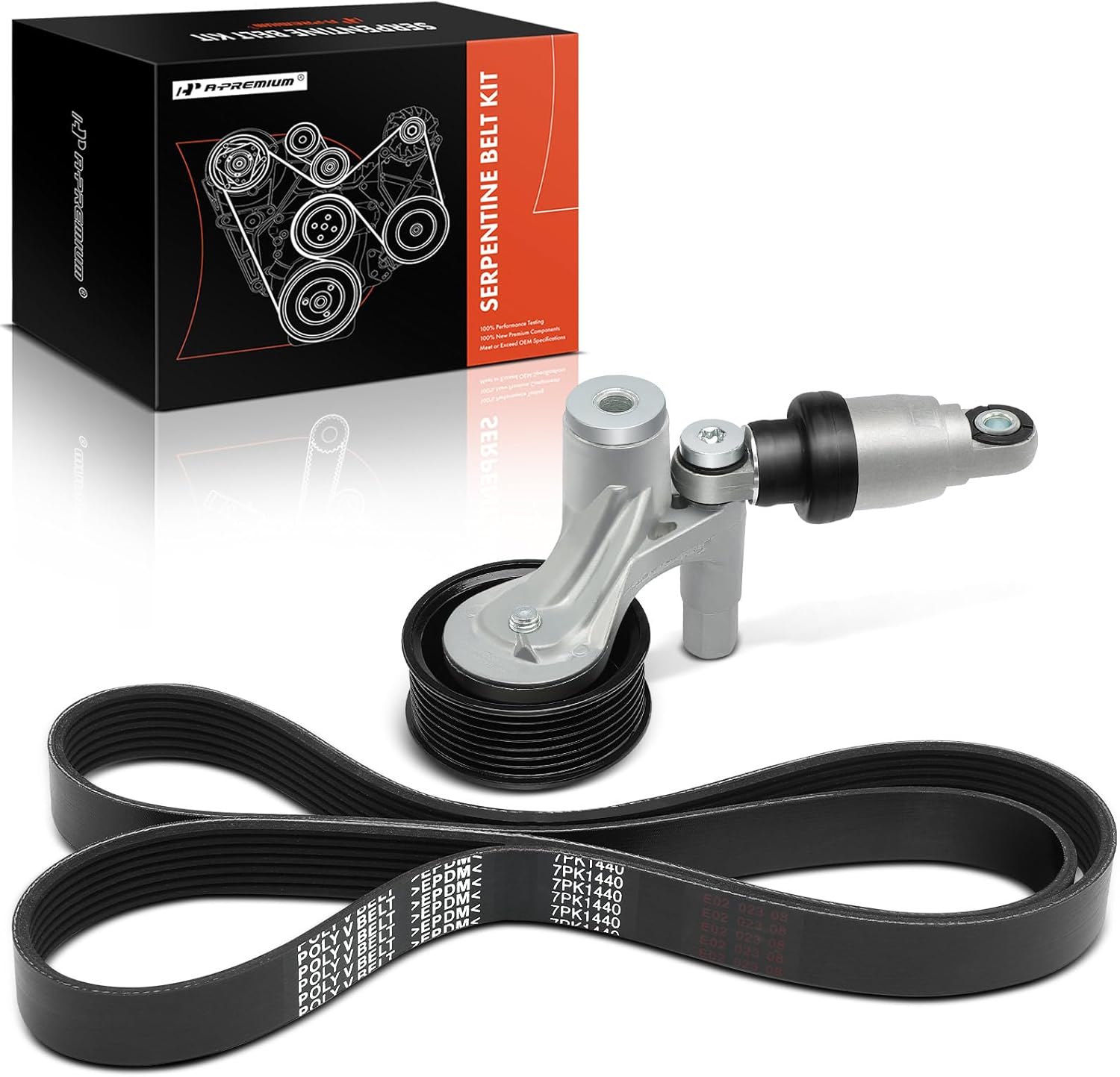 A-Premium Engine Serpentine Belt Drive Kit with Tensioner Compatible with Honda Accord 2013-2017, CR-V CRV 2017-2019 & Acura TLX 2015-2020 - DOHC L4 2.4L