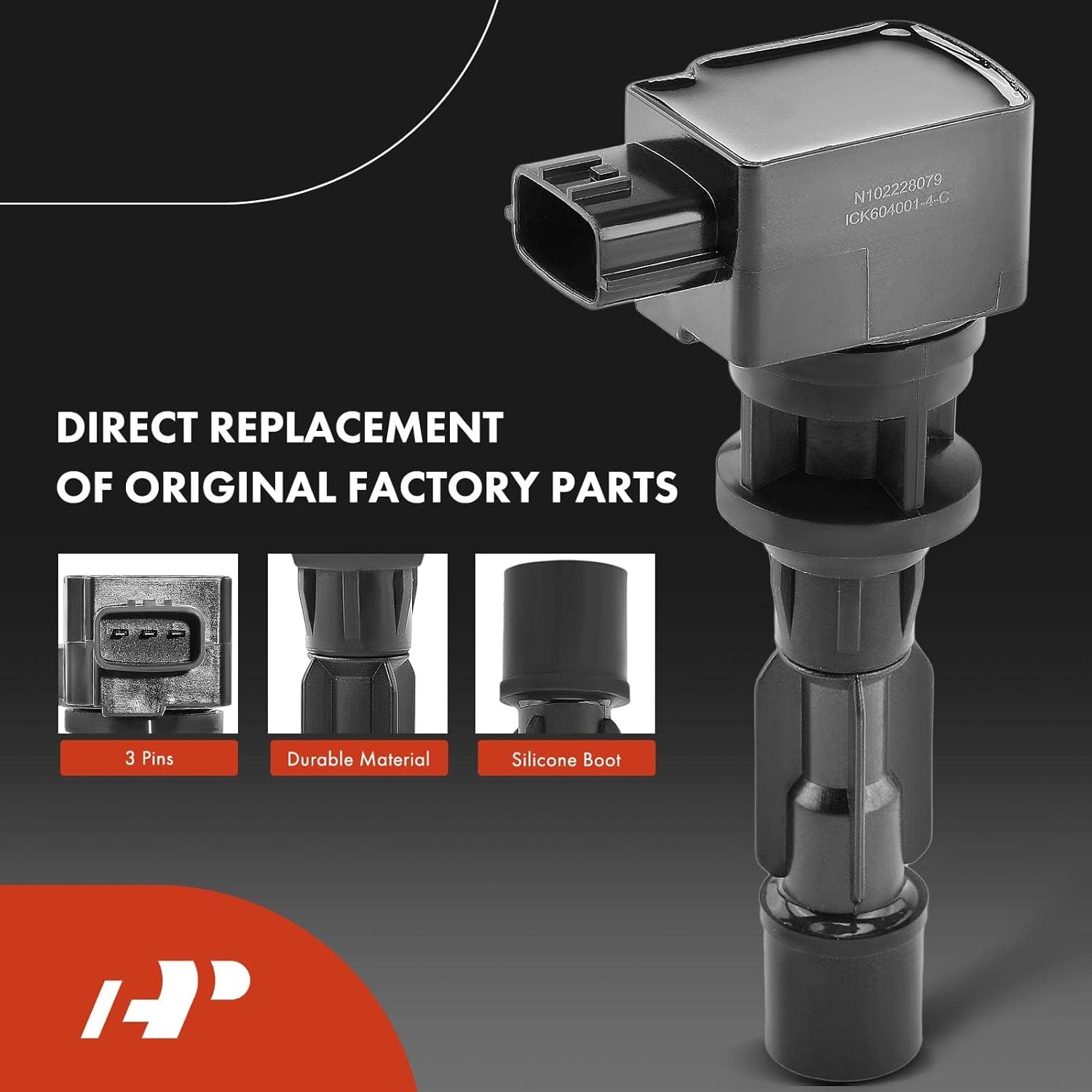 A-Premium Ignition Coils and Spark Plugs Kits Compatible with Mazda 5 2008-2010 2012-2015, 2.3L 2.5L 4-PC Set