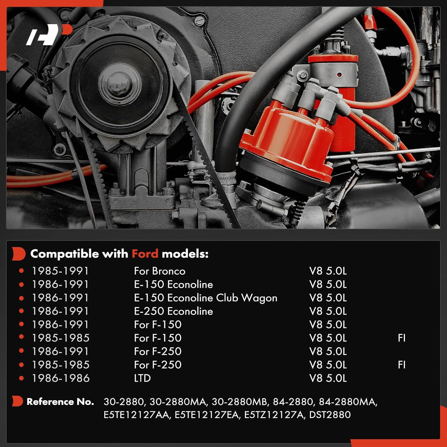 A-Premium Ignition Distributor with Cap and Rotor Compatible with Ford F-150 F-250 1985-1991, Bronco 1985-1991, E-150 Econoline, E-150 Econoline Club Wagon, E-250 Econoline 1986-1991, LTD 1986, 5.0L