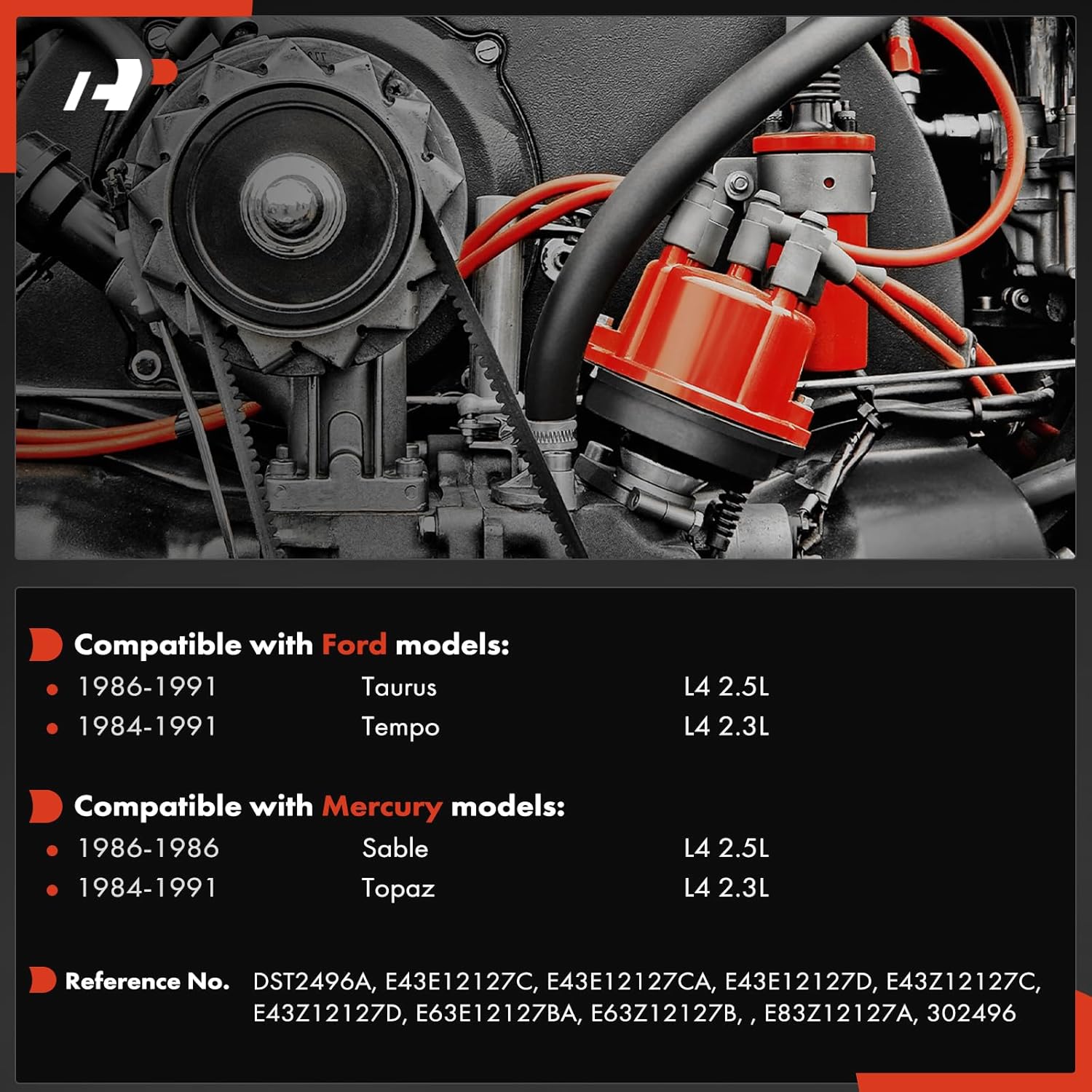 A-Premium Ignition Distributor with Cap and Rotor Compatible with Ford Taurus 1986-1991 2.5L, Tempo 1984-1991 2.3L & Mercury Sable 1986 2.5L, Topaz 1984-1991 2.3L