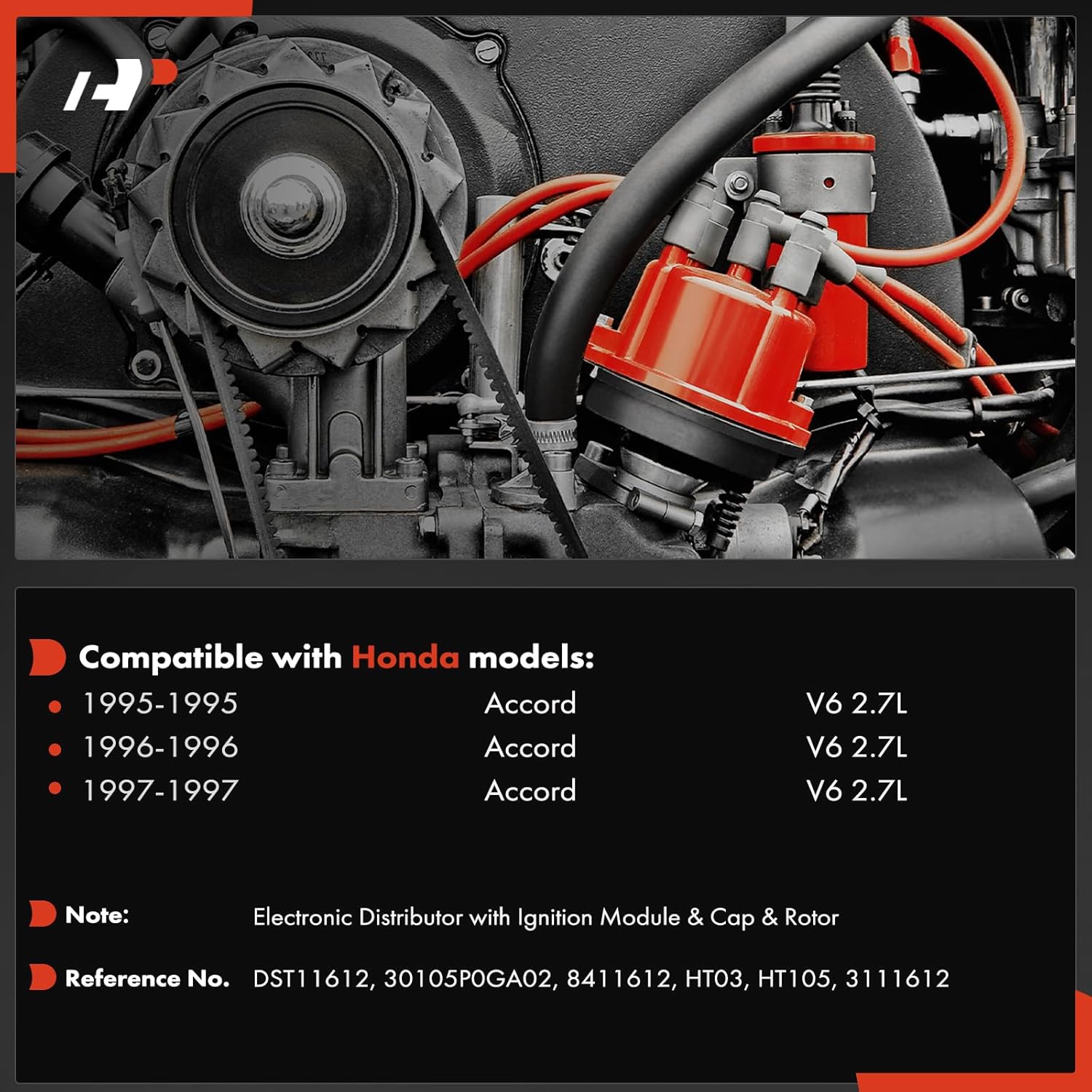 A-Premium Ignition Distributor with Cap and Rotor Compatible with Honda Accord 1995 1996 1997, 2.7L, Replace# 30105P0GA02, HT03