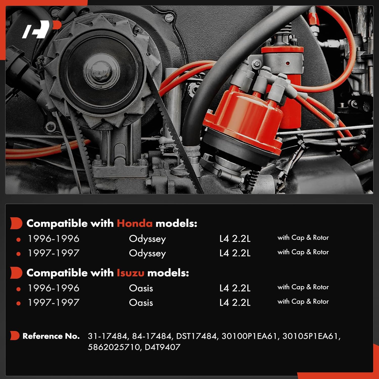 A-Premium Ignition Distributor with Cap and Rotor Compatible with Honda Odyssey 1996-1997 & Isuzu Oasis 1996-1997, 2.2L