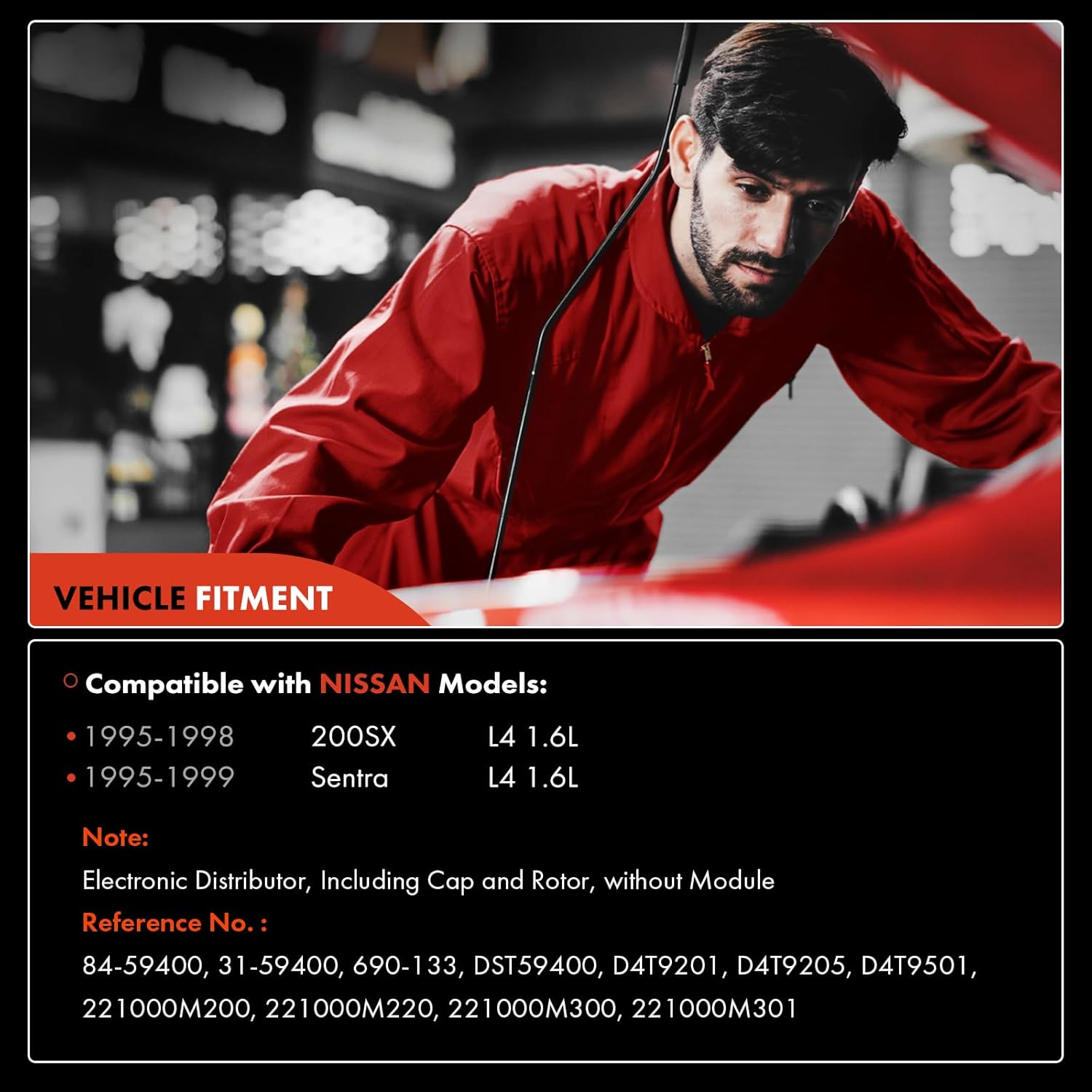 A-Premium Ignition Distributor with Cap and Rotor Compatible with Nissan Sentra 1995-1999, 200SX 1995-1998, 1.6L