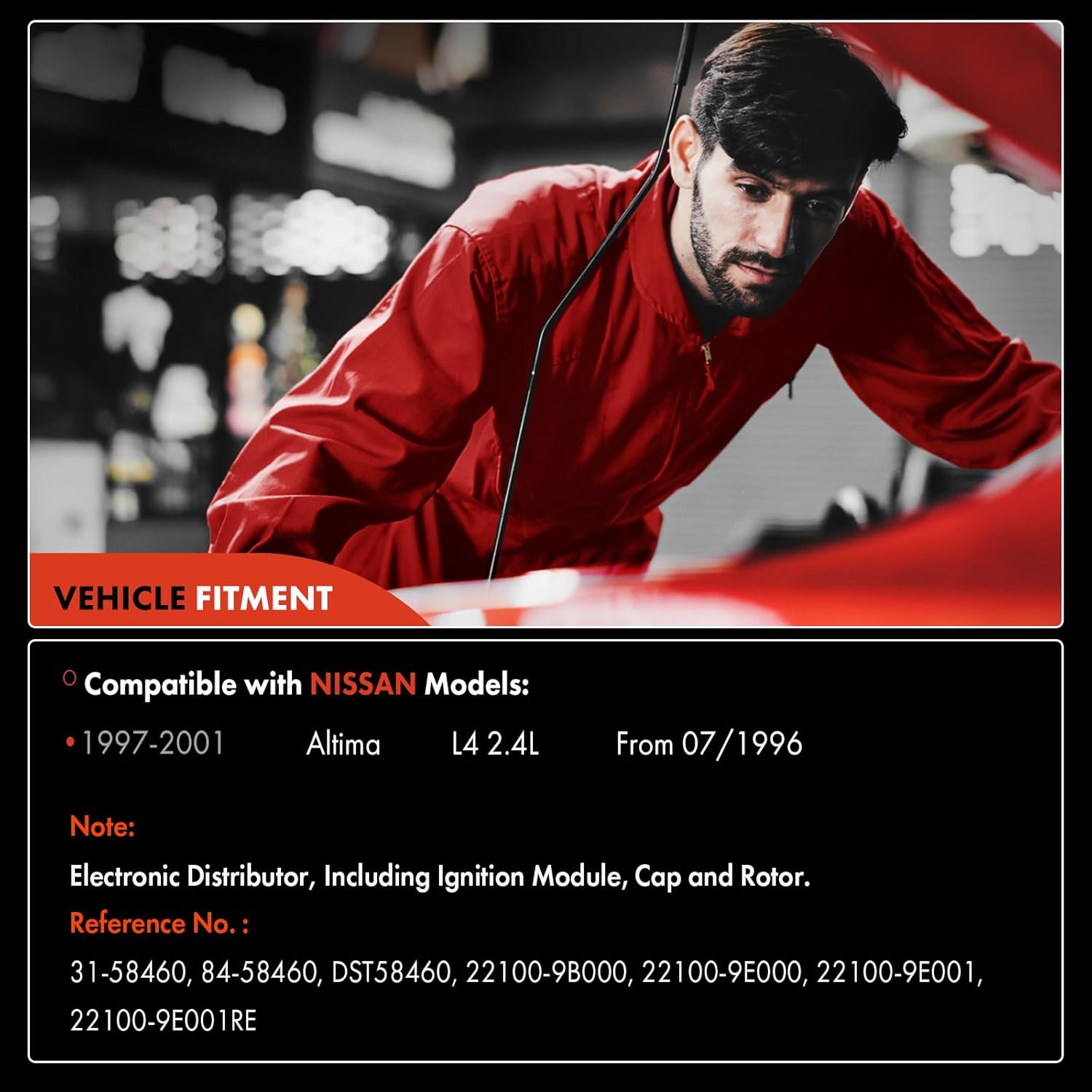 A-Premium Ignition Distributor with Module and Cap and Rotor Compatible with Nissan Altima 1997 1998 1999 2000 2001 2.4L