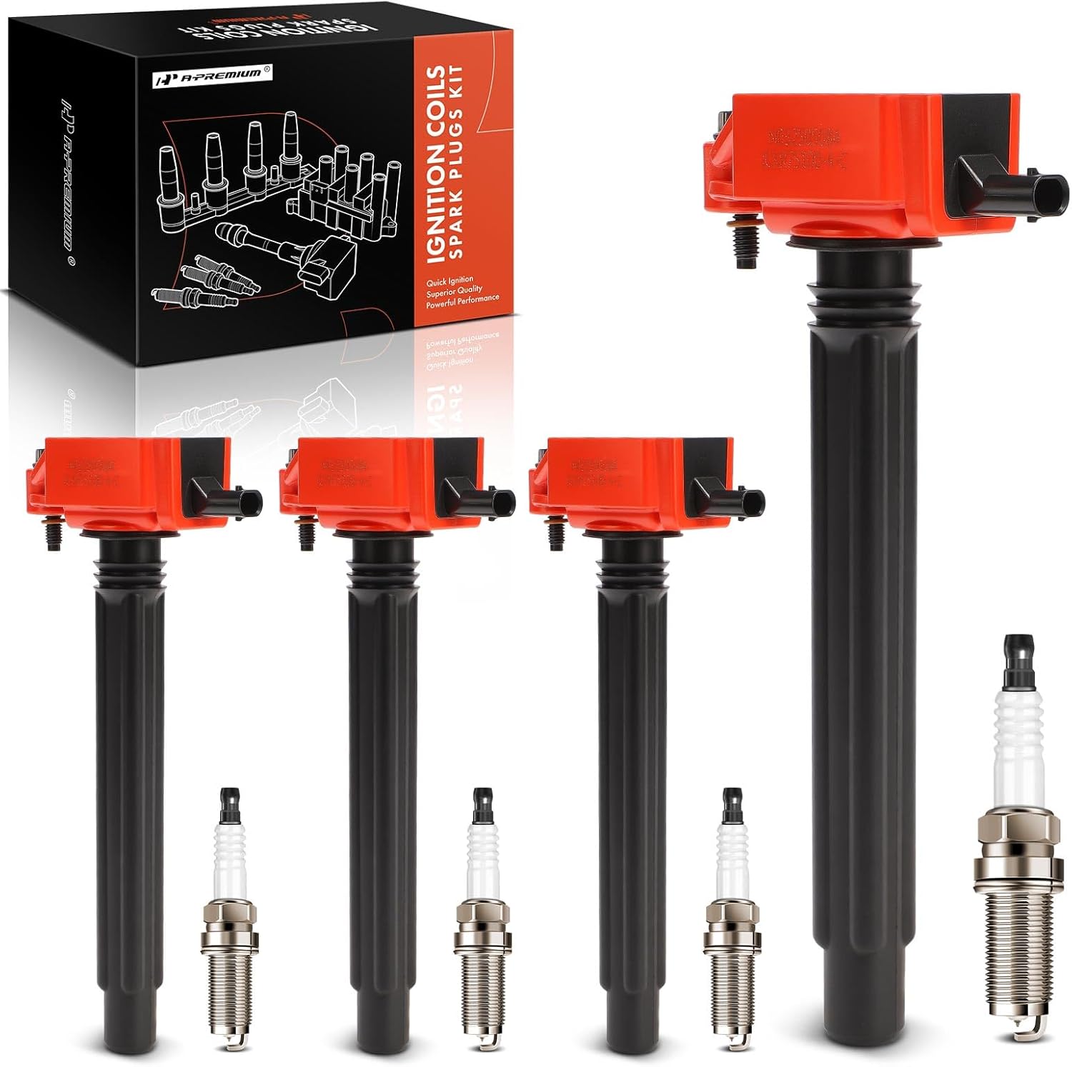 A-Premium (Red) Set of 8 Ignition Coil Pack and Iridium Spark Plugs Compatible with Jeep Cherokee 2014-2022, Compass 2018-2022, Renegade & Chrysler 200 & Ram ProMaster & Dodge Dart & Fiat 500X, 2.4L