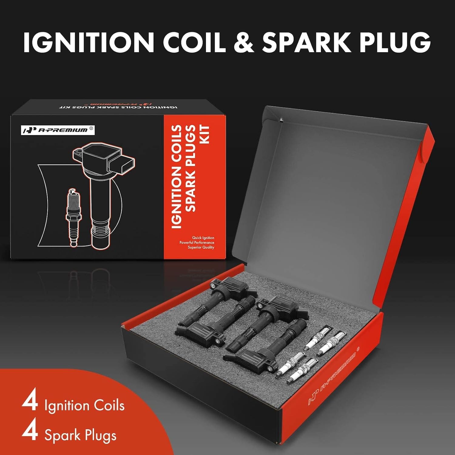 A-Premium Set of 4 Ignition Coil Pack and Iridium Spark Plugs Compatible with Hyundai Elantra 2015 & Kia Forte Koup 2017, 2.0L