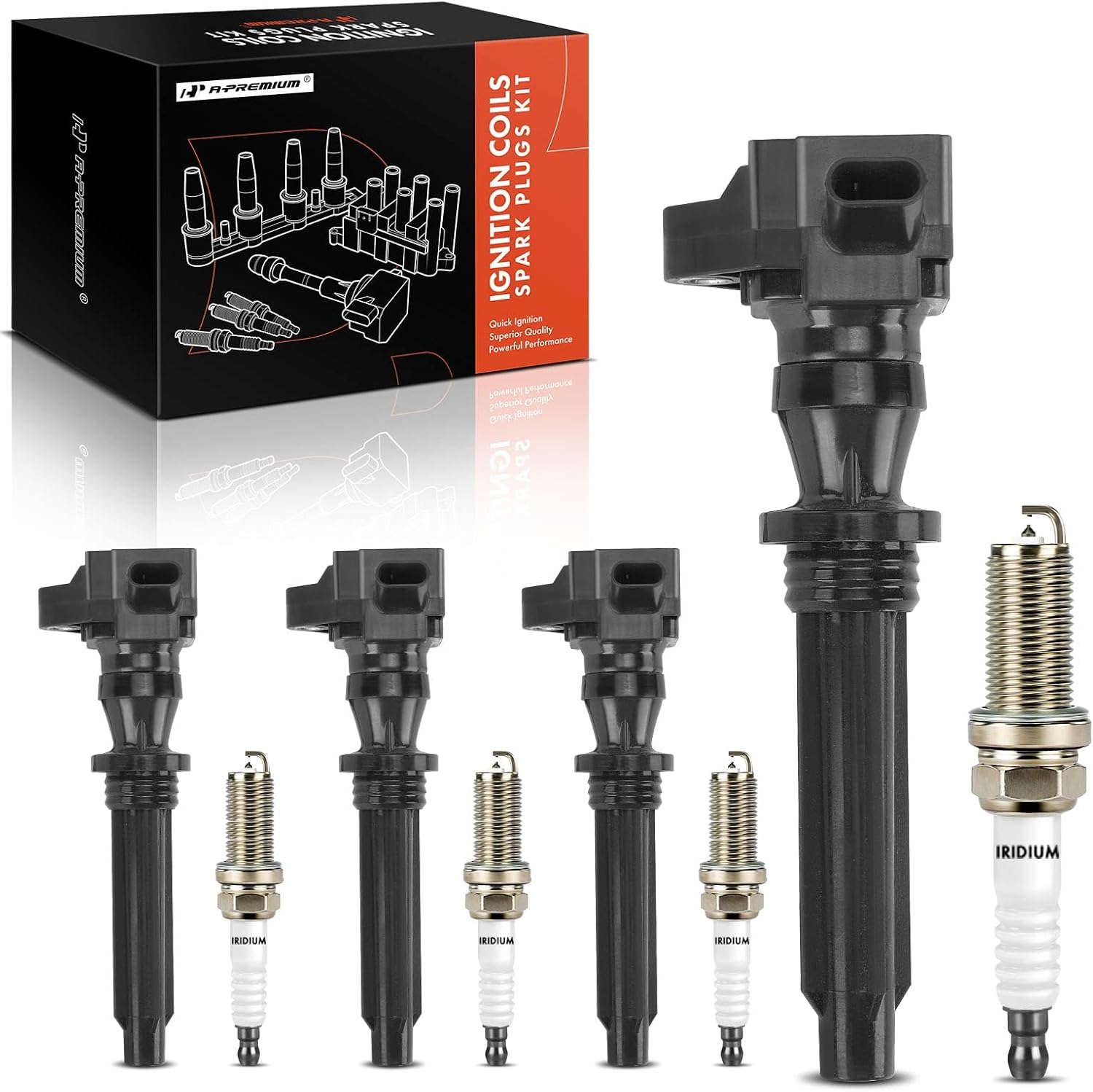 A-Premium Set of 4 Ignition Coil Pack and Iridium Spark Plugs Compatible with Land Rover Range Rover Evoque 2018-2020, Range Rover Velar, Range Rover Sport, Discovery Sport, 2.0L