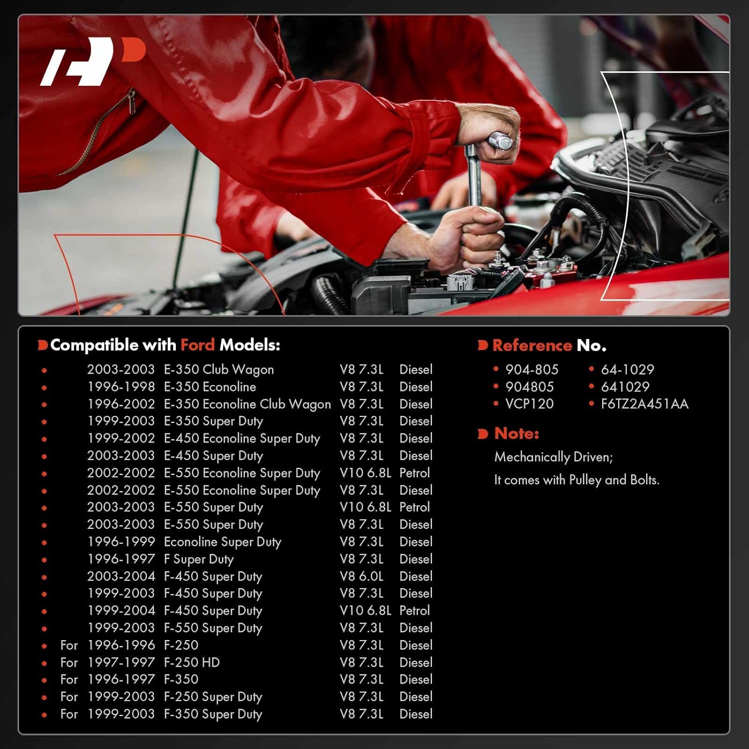 A-Premium Vacuum Pump Compatible with Ford F-250 1996, F-350 1996-1997, E-350/E-450/E-550/Econoline/F Super Duty, F-250/F-350/F-450/F-550 Super Duty, F-250 HD, E-350 Econoline Club Wagon