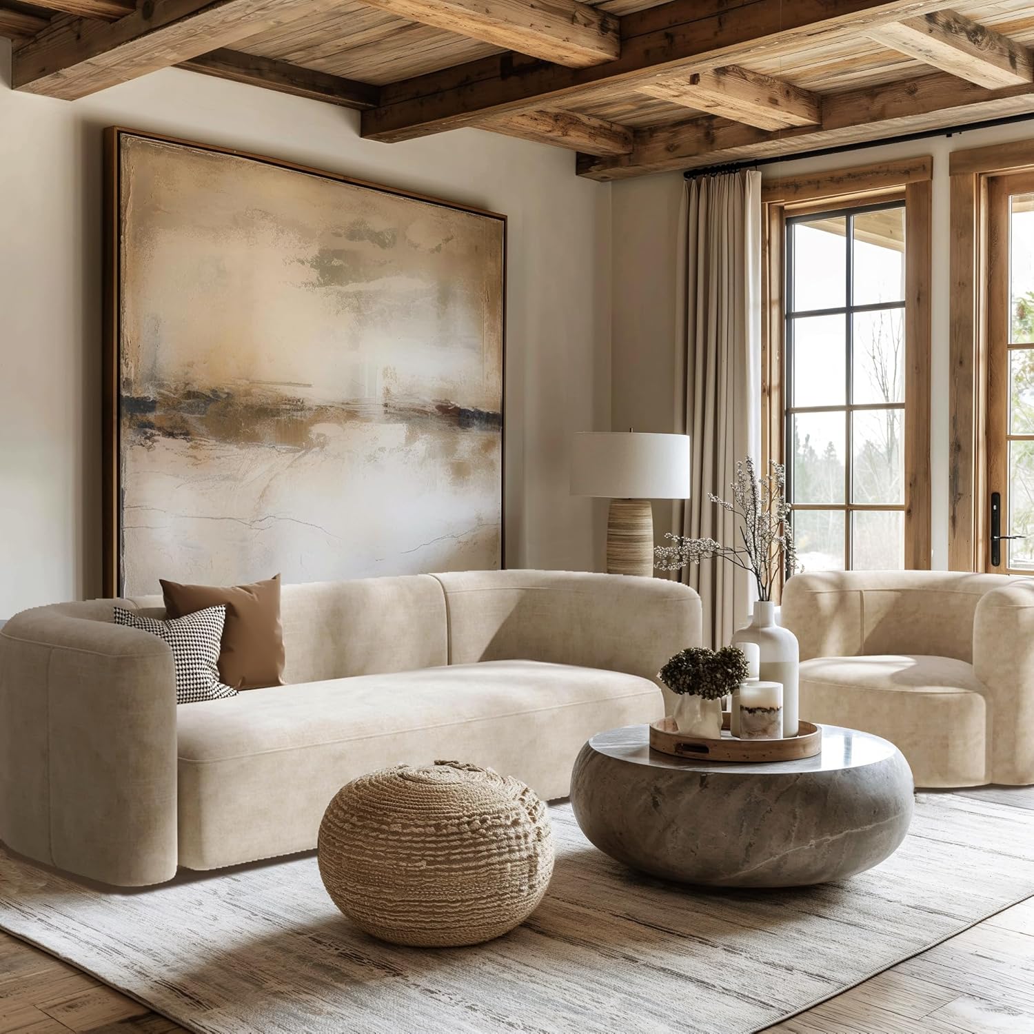 Acanva Luxury Modern Tight Curved Back Velvet Sofa, Minimalist Style Comfy Couch for Living Room Apartment, 3 Seater, Cream