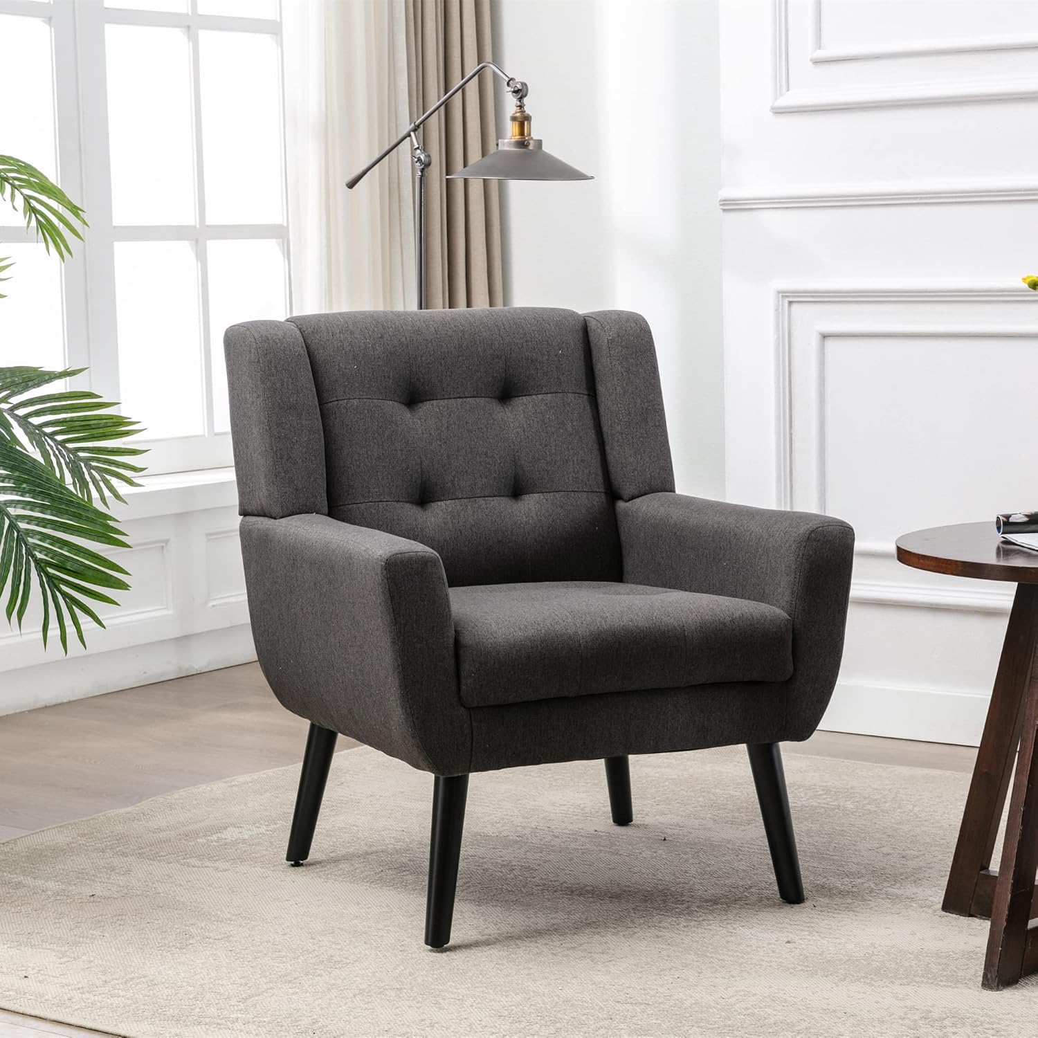 Accent Armchair, Living Room Chairs with Curved Back, Velvet Cushion, 250 Lbs Weight Capacity Ergonomics Accent Chair, Upholstered Single Sofa for Bedroom Dark Gray As Shown