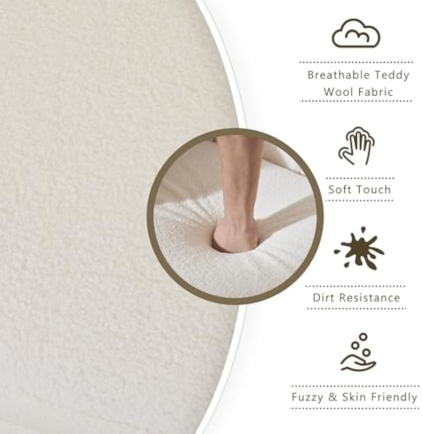 Accent Chair, Ivory White, Modern Retro Club Chair, Birch Frame, Upholstered Teddy Wool Fabric, Single Sofa Armchair for Small Spaces, Living Room, Bedroom, Reading Corner, Balcony,Office