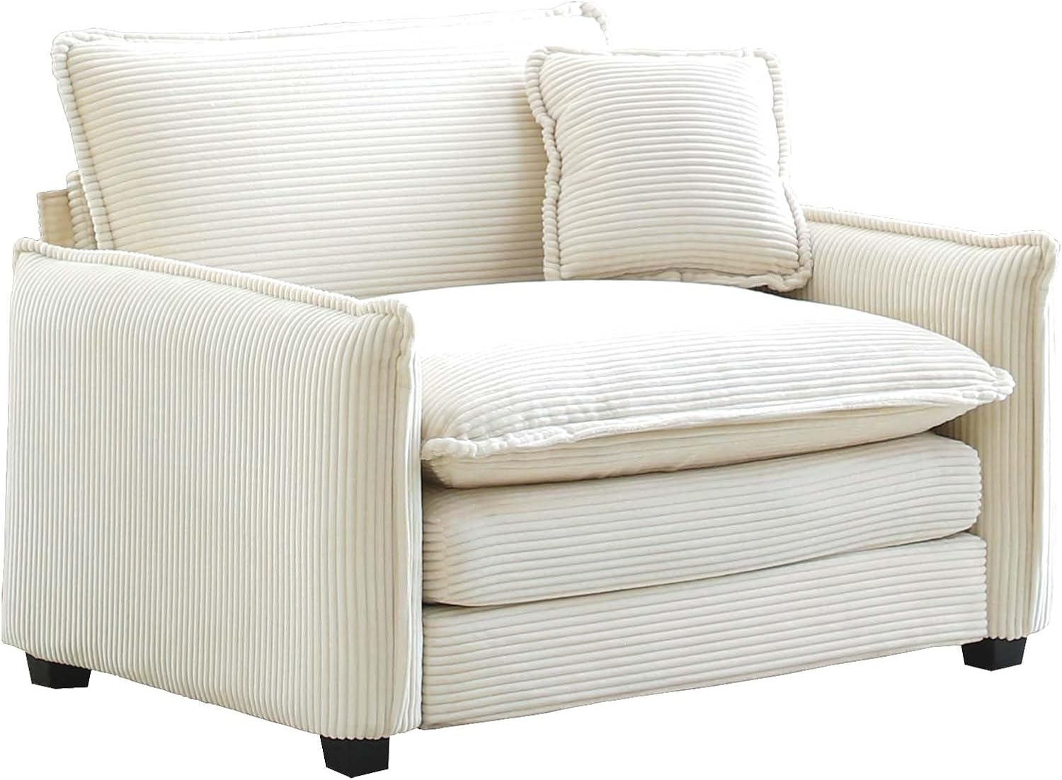 Accent Chair, Living Room Chair, Single Sofa Chair with Large Seat, Corduroy Deep Seat Sofa, Modern Comfy Armchair Reading Chairs Lounge Chair for Bedroom, Waiting Room, Guest Room, Beige