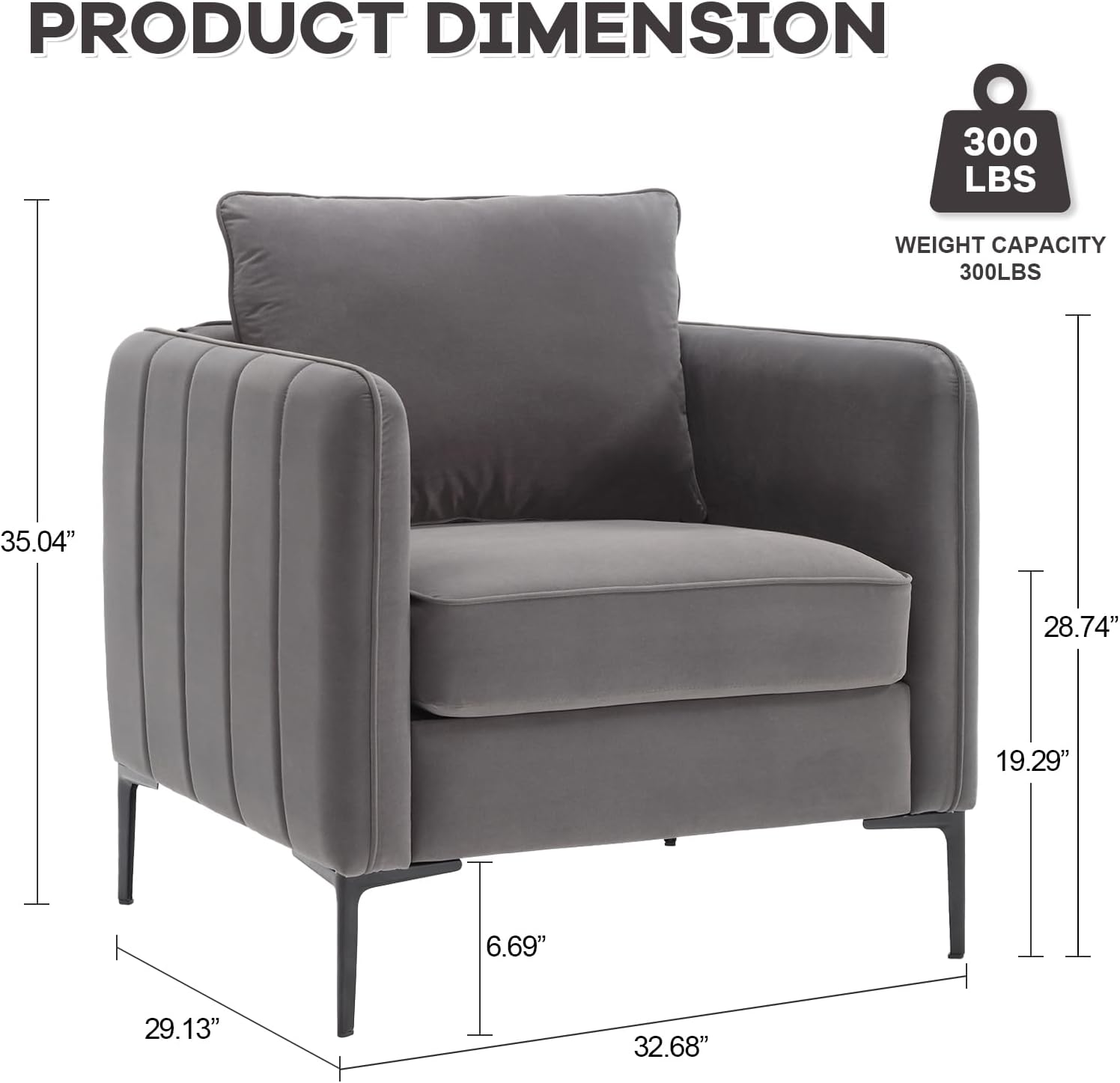 Accent Chair Set of 2 for Living Room, Velvet Comfy Single Sofa Chair Mid-Century Modern Armchair with 1 Pillow and Metal Legs for Bedroom Office Reading (Gray)