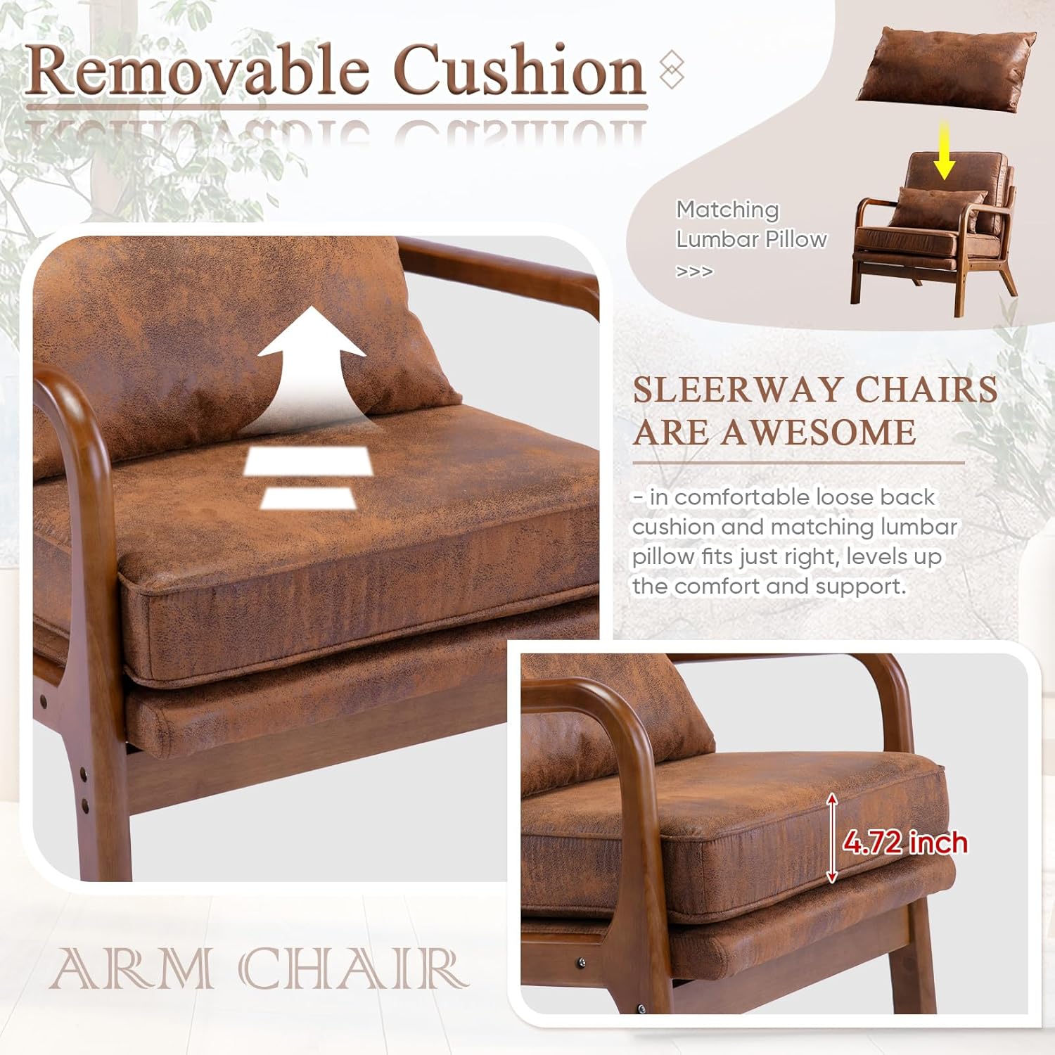 Mid-Century Modern Style - This vintage-look leather armchair is designed with a solid wood frame bringing the mid-century modern style to your home. Also the walnut color frame of this small space chair fits the solemn elegance of your room.