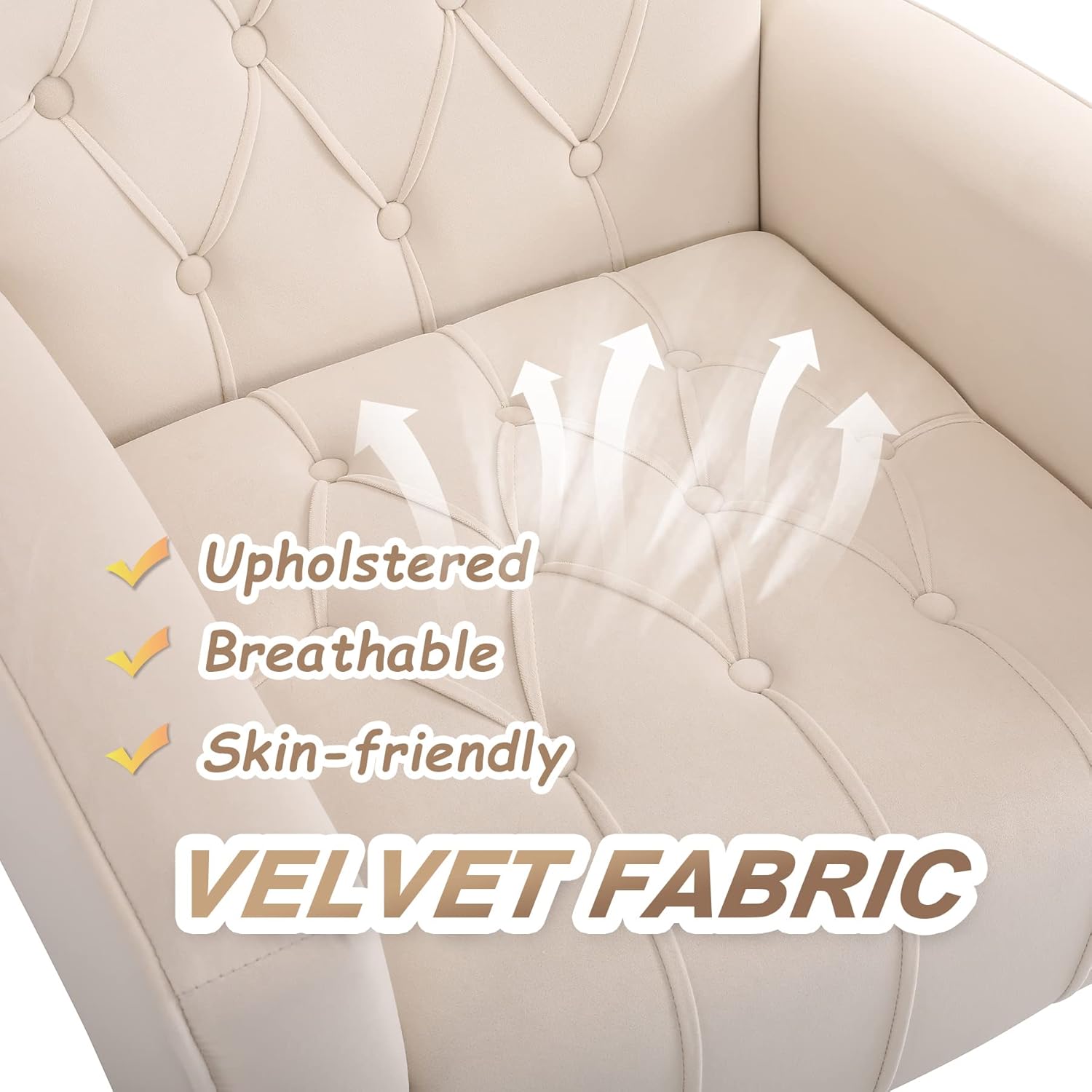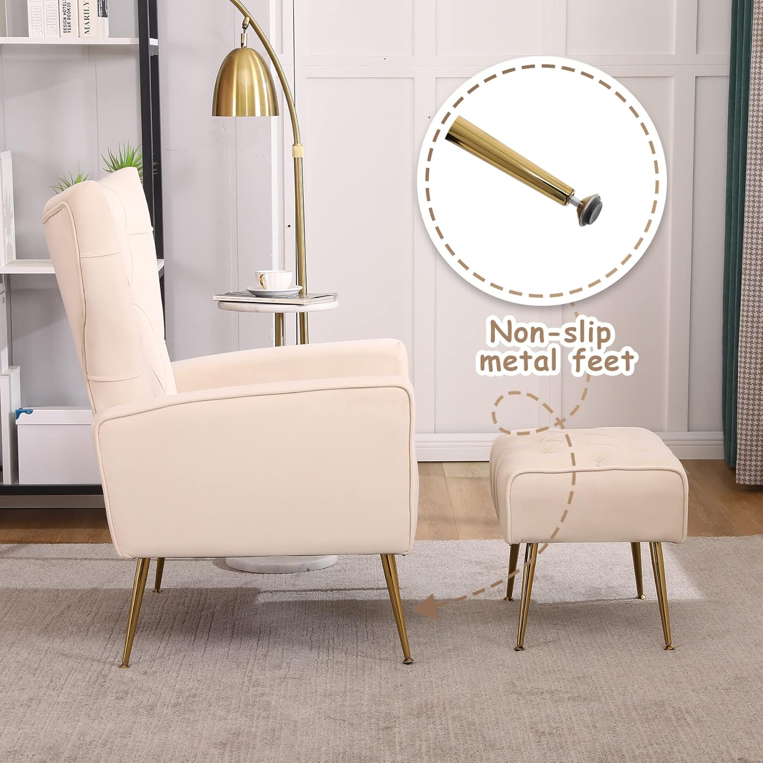 Accent Chair with Ottoman Set of 2, Comfy Chair and Ottoman Set, Upholstered Tufted Lounge Chair with Wide Seat Footrest, Reading Armchair for Living Room Bedroom, Beige,Velvet