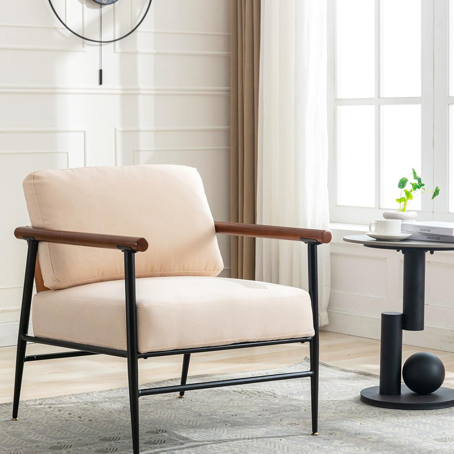 Accent Chairs Set of 2 Mid Century Modern Chair Linen Fabric Living Room Lounge Chair with with Overstuffed Back Pillow and Cushion Reading Side Chair Easy Assembly for Living Room, Bedroom, Belcony