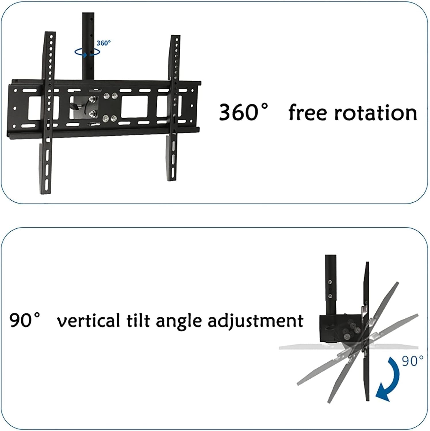 - This premium ceiling TV mount is Suitable for most TVs, Strong bearing capacity. it high-grade of steel and its scratchresistant coat finish provides you the peace of mind that your TV is safely mounted.